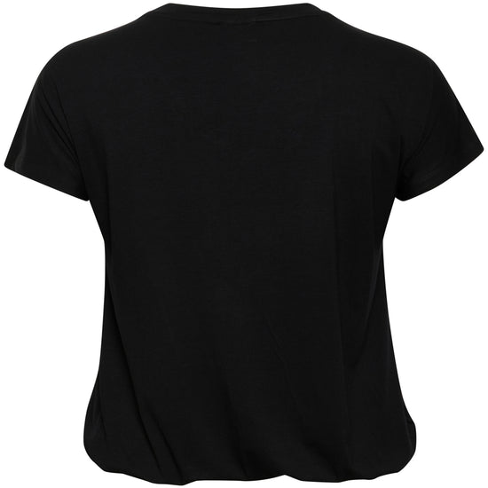 Med sit enkle udtryk og den dybe sorte farve er denne t-shirt utrolig nem at style til både hverdag og pænere brug. Det bløde materiale med elastan giver en høj komfort og bevægelsesfrihed, så du kan føle dig tilpas hele dagen. Du kan med fordel sætte den sammen med et par smarte jeans i plus size for et afslappet look, eller bruge den under en cardigan til kvinder når vejret er køligere.