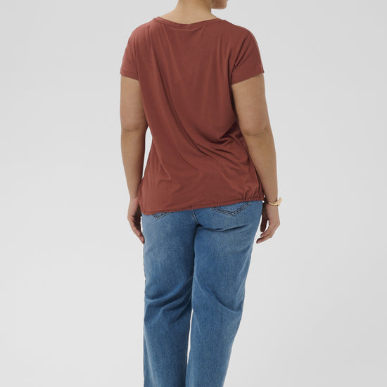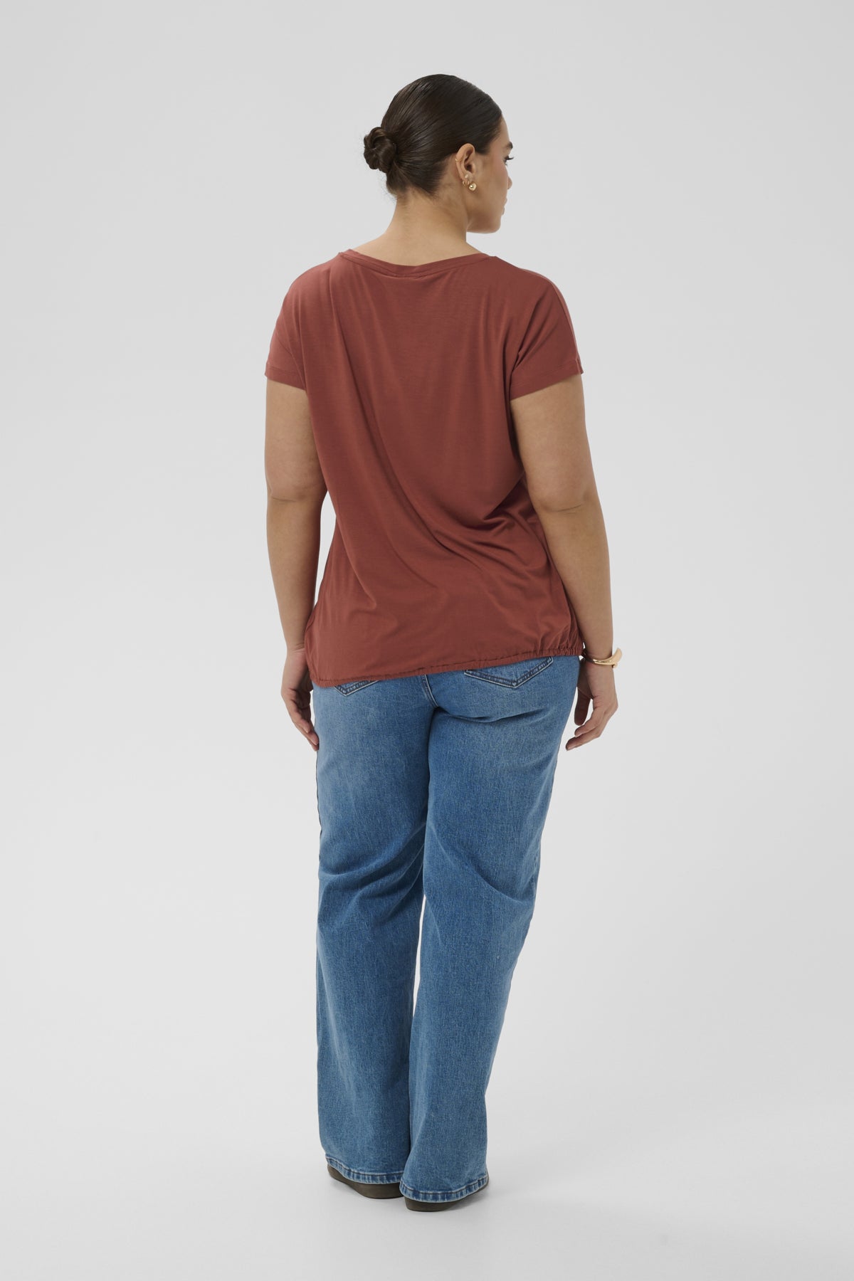 Med sin varme og let brændte henna nuance tilføjer denne overdel en utrolig flot glød til din samlede fremtoning. Som det tydeligt ses på billedet, fungerer den helt exceptionelt godt sammen med et par klassiske blå plus size jeans, hvilket lynhurtigt skaber et cool og ubesværet udtryk. Den ensfarvede overflade og bløde tekstur gør trøjen ekstremt nem at style på tværs af din garderobe. Det er uden tvivl en fantastisk og næsten uundværlig tilføjelse til din basisgarderobe, som reddet enhver tøjkrise. Materialets fine struktur gør det desuden let at slynge en let jakke eller trøje over skuldrene.