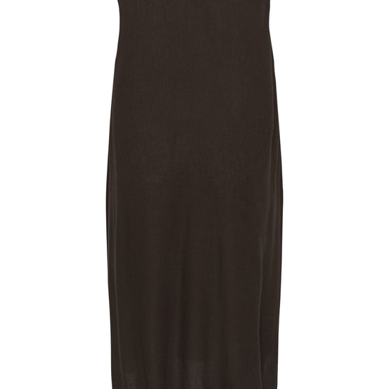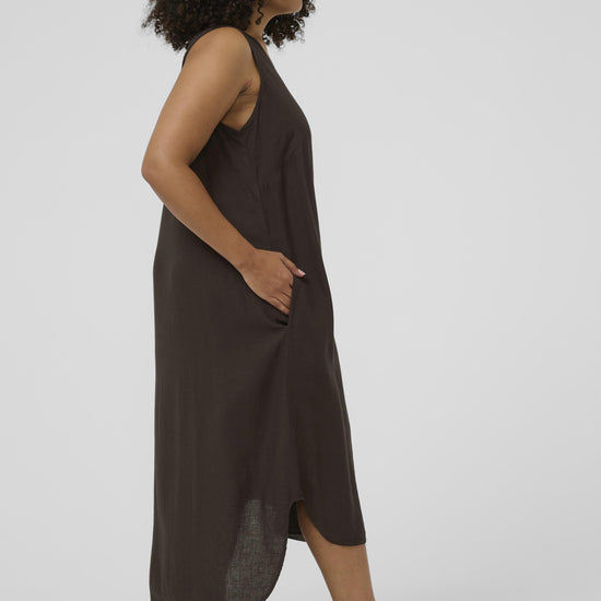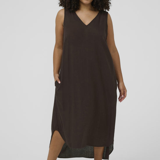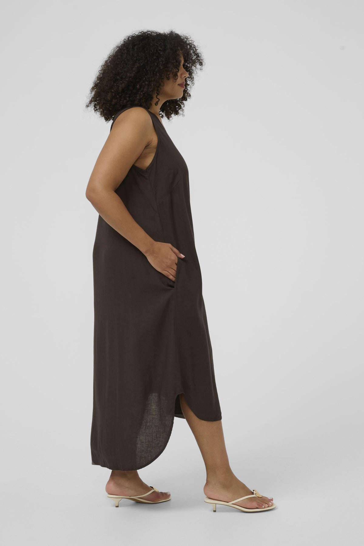 Træd ind i sæsonen med denne flatterende og løstsiddende kjole, der kombinerer komfort og stil på smukkeste vis. Den flotte dybbrune nuance, kendt som black coffee, giver et sofistikeret udtryk til din garderobe, mens materialet af blød viskose falder utroligt flot om kroppen. Kjolen er spækket med fine visuelle detaljer, som giver den et elegant og afslappet præg.
