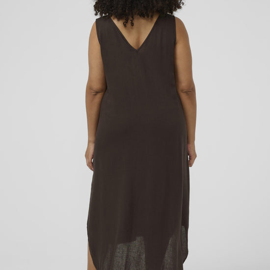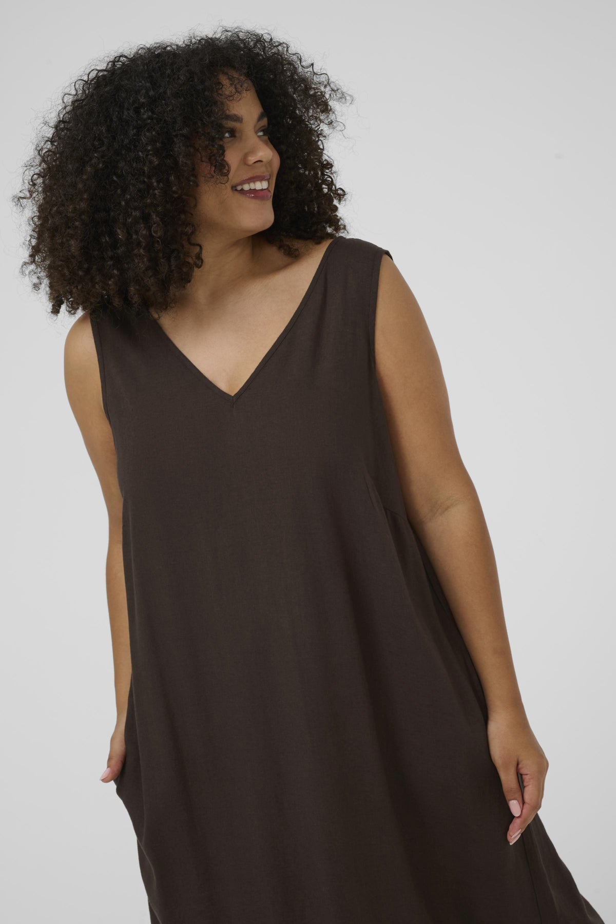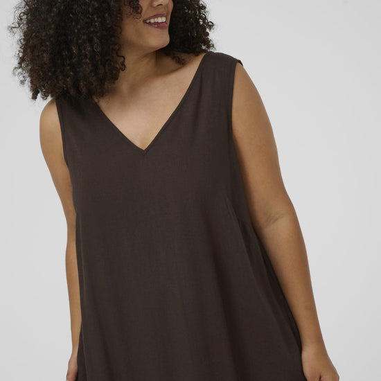 Denne skønne model er skabt med en rummelig a-formet silhuet, der sikrer en fantastisk bevægelsesfrihed dagen lang. Det lette ærmeløse snit gør den oplagt til varme dage, men du kan sagtens integrere den i dit udtryk året rundt. For et hyggeligt lag-på-lag look kan du med fordel smide en af vores bløde plus size cardigans over skuldrene. Det er netop denne brede alsidighed i designet, der gør Kaffe Curve til et elsket brand blandt kvinder.