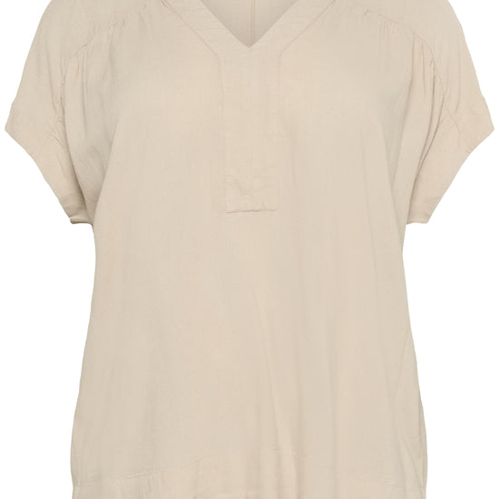 Opdag den perfekte kombination af elegance og komfort med denne smukke top fra Kaffe Curve. Designet med en afslappet pasform, der sikrer bevægelsesfrihed, er denne top ideel til både hverdagsbrug og specielle lejligheder. Med 70% Viscose (LivaEcoT) og 30% Linen, tilbyder den en let og åndbar følelse, som er perfekt til enhver sæson.