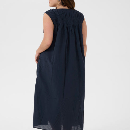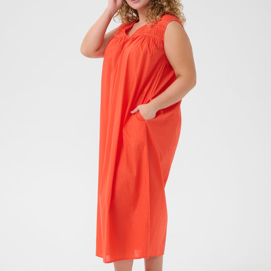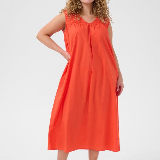 Oplev den sofistikerede elegance med Kaffe Curve's kjole, der kombinerer komfort og stil på smukkeste vis. Denne kjole er lavet af 100% bomuld, hvilket sikrer åndbarhed og lethed, der er ideel til både varme sommerdage og hyggelige indendørs arrangementer. Med sit afslappede fit er kjolen designet til at falde smukt over kroppen, hvilket giver en ubesværet elegance til din garderobe.