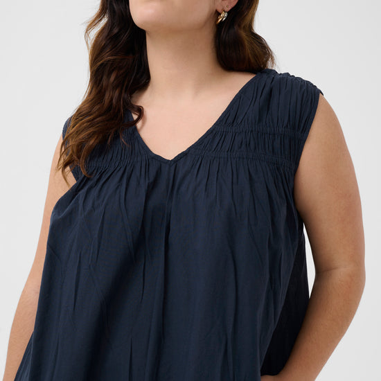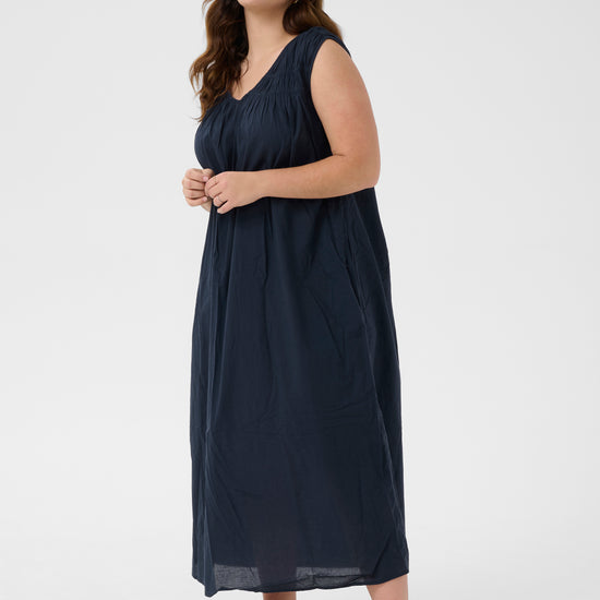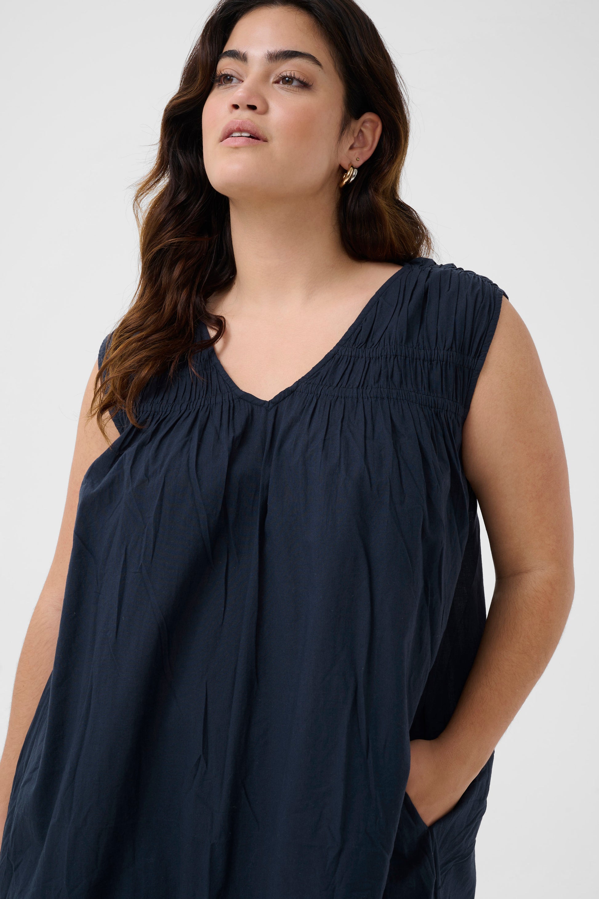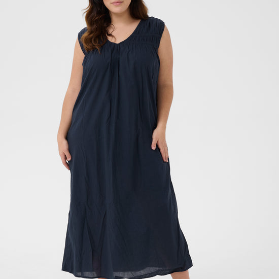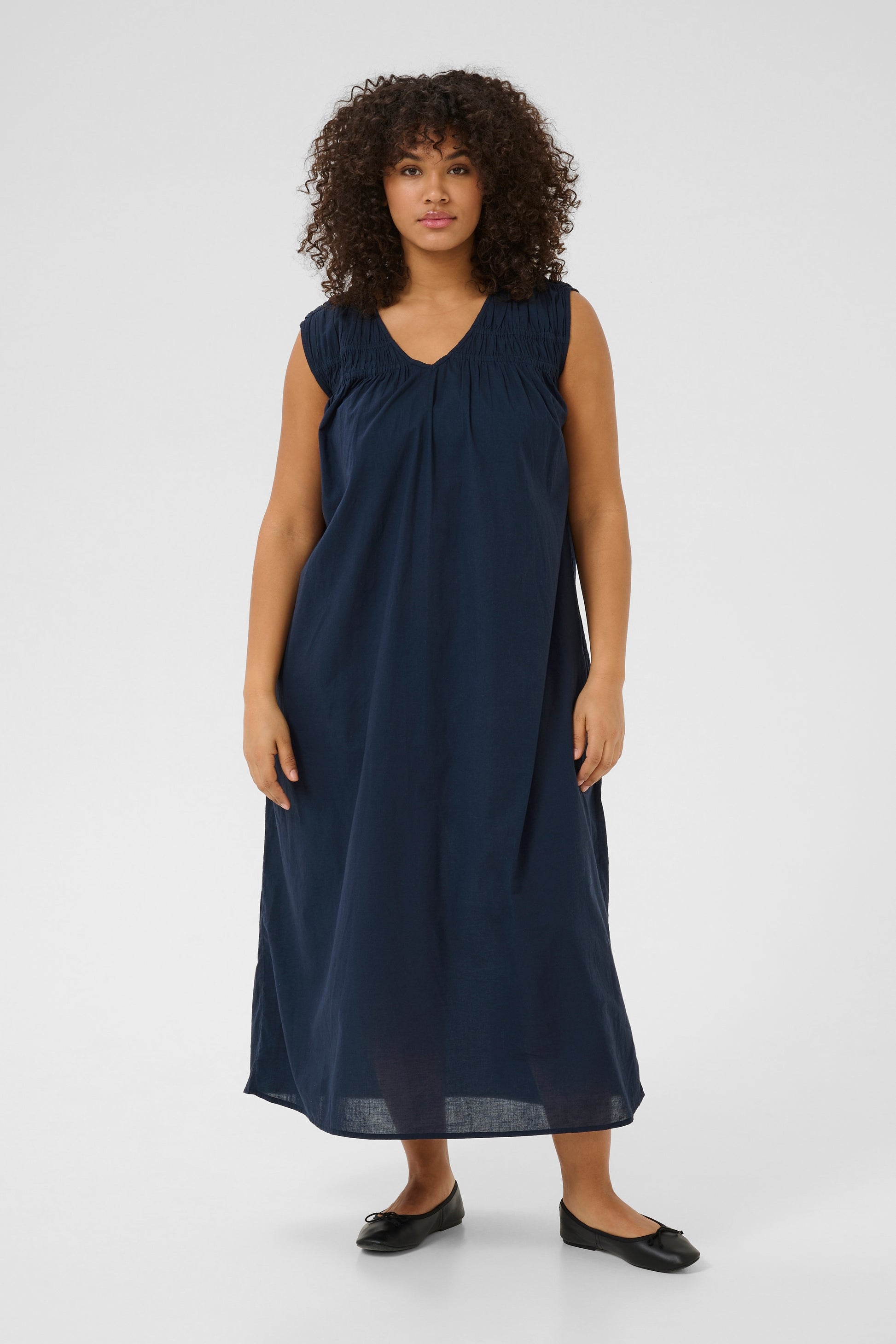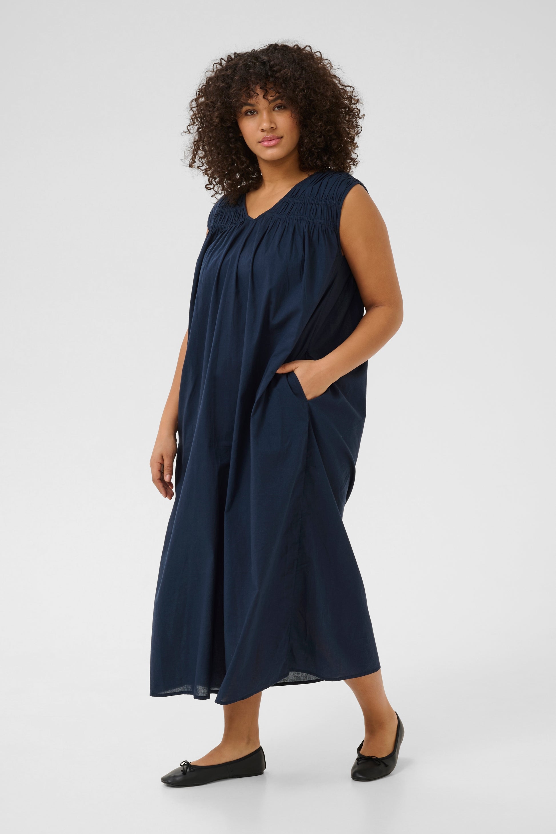 Kjolen fås i to smukke farver: den livlige Grenadine og den klassiske Midnight Marine, så du kan vælge den, der passer bedst til din stil. Uanset om du ønsker en farverig tilføjelse til din samling eller en tidløs klassiker, har denne kjole dig dækket. For flere kjoler fra Kaffe Curve, kan du besøge vores udvalg af Kaffe Curve kjoler.