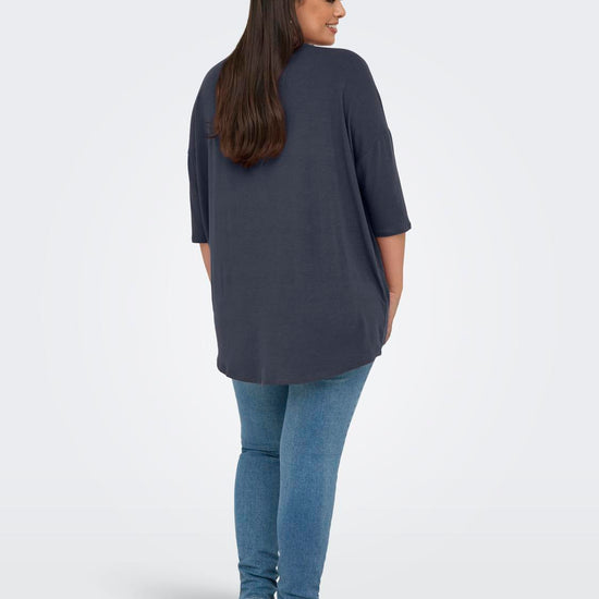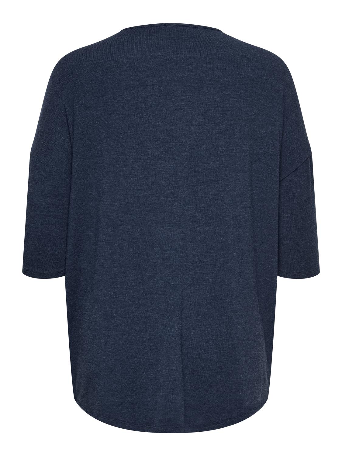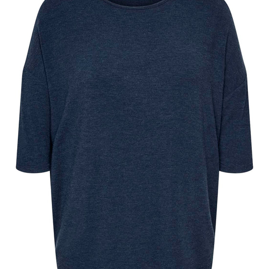 Denne 3/4 ærmet top har en rund halsudskæring og en løs pasform, der sikrer komfort hele dagen. Designet med dropped shoulders og en lidt længere ryg for et moderne og behageligt look. Materialet kombinerer polyester, viscose og elastan, hvilket giver en blød, let strækbar og holdbar jersey-kvalitet, perfekt til både skole, arbejde og hverdagsbrug.