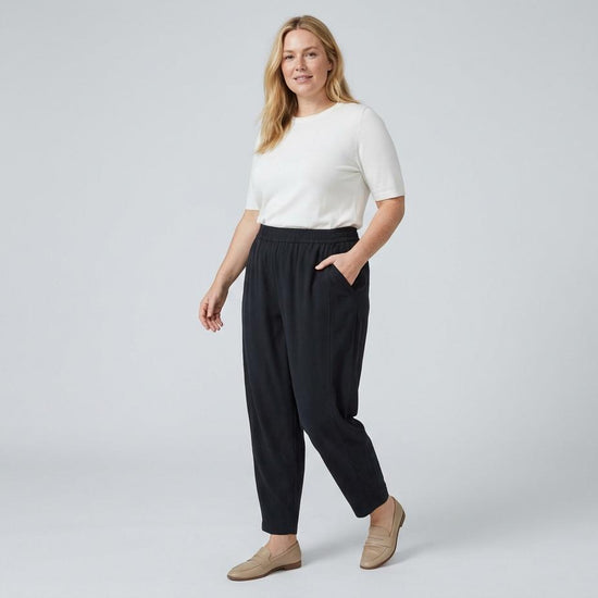 Disse bukser fra Cassiopeia forener et stilrent udtryk med en fantastisk komfortabel pasform. Bukserne er fremstillet i en kraftig jerseykvalitet, der falder flot og føles blød at have på dagen lang. De lodrette syninger ned langs benene giver et elegant snit og virker slankende visuelt. De er let ballonformet som giver et trendy look.