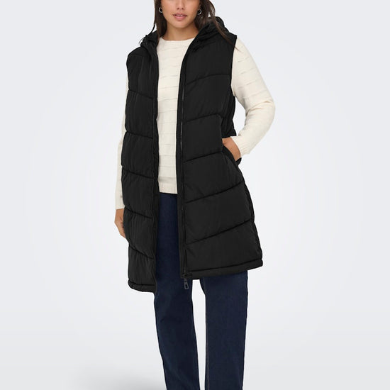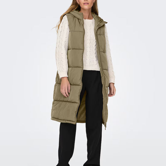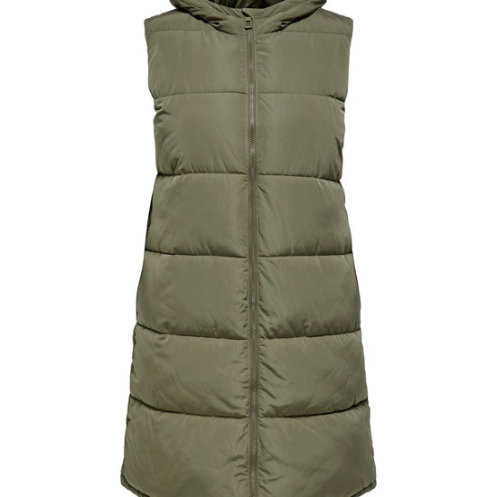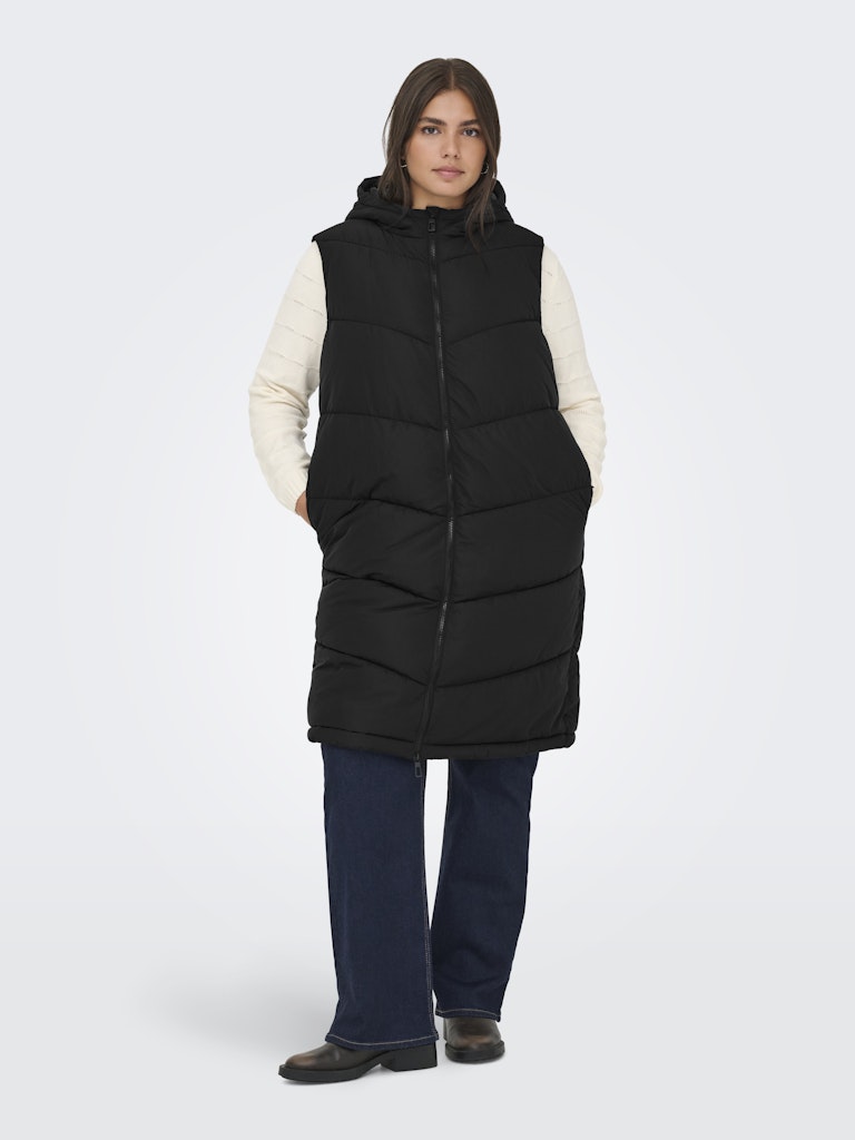 Den lange olivengrønne vest fra ONLY CARMAKOMA kombinerer et moderne, quiltet design med praktisk komfort. Vesten har høj hals og rummelig hætte, der giver ekstra varme og et stilrent look. Den er fremstillet i blødt, let materiale og lukkes med en to-vejs lynlås, mens de praktiske sidelommer gør den ideel til daglig brug.