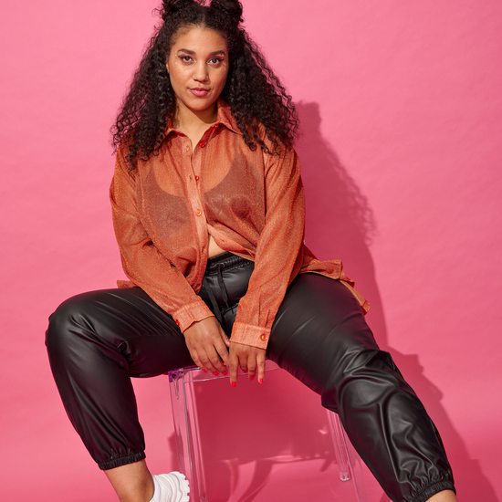 Skjorte fra Anyday med glimmer, knaplukning, lange ærmer og krave.