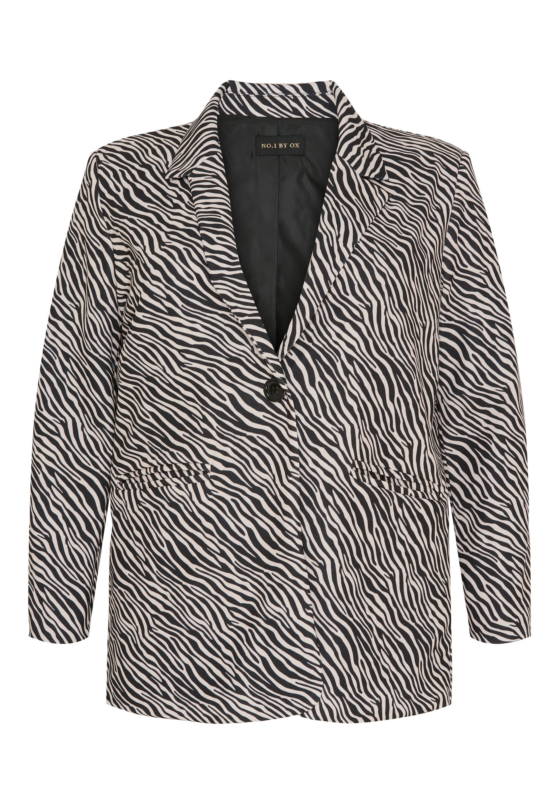 Denne smarte blazer er det perfekte valg til kvinden, der ønsker at tilføje kant til garderoben med et klassisk snit. Det iøjnefaldende dyreprint i sort og hvid skaber et skarpt og moderne udtryk, som fungerer fantastisk til at pifte et enkelt outfit op. Blazeren har en flot åben krave og lukkes med en enkelt knap foran, hvilket giver et elegant og tidløst look. Du kan se flere styles fra mærket No. 1 by Ox her.