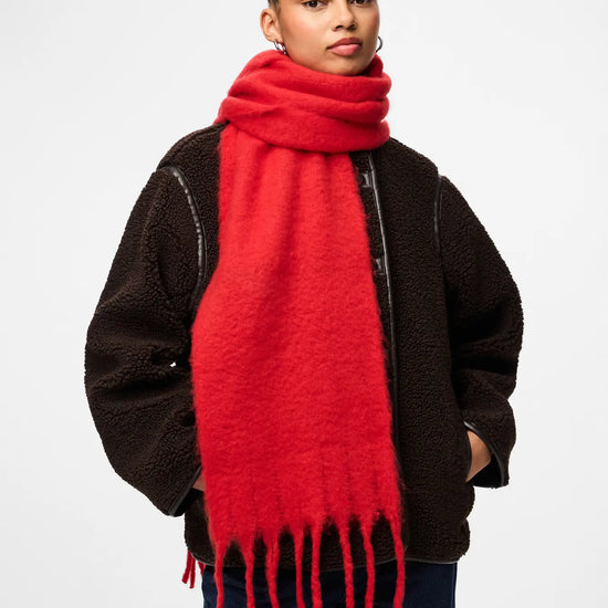 Langt tørklæde i goji berry – stilfuld varme fra Pieces