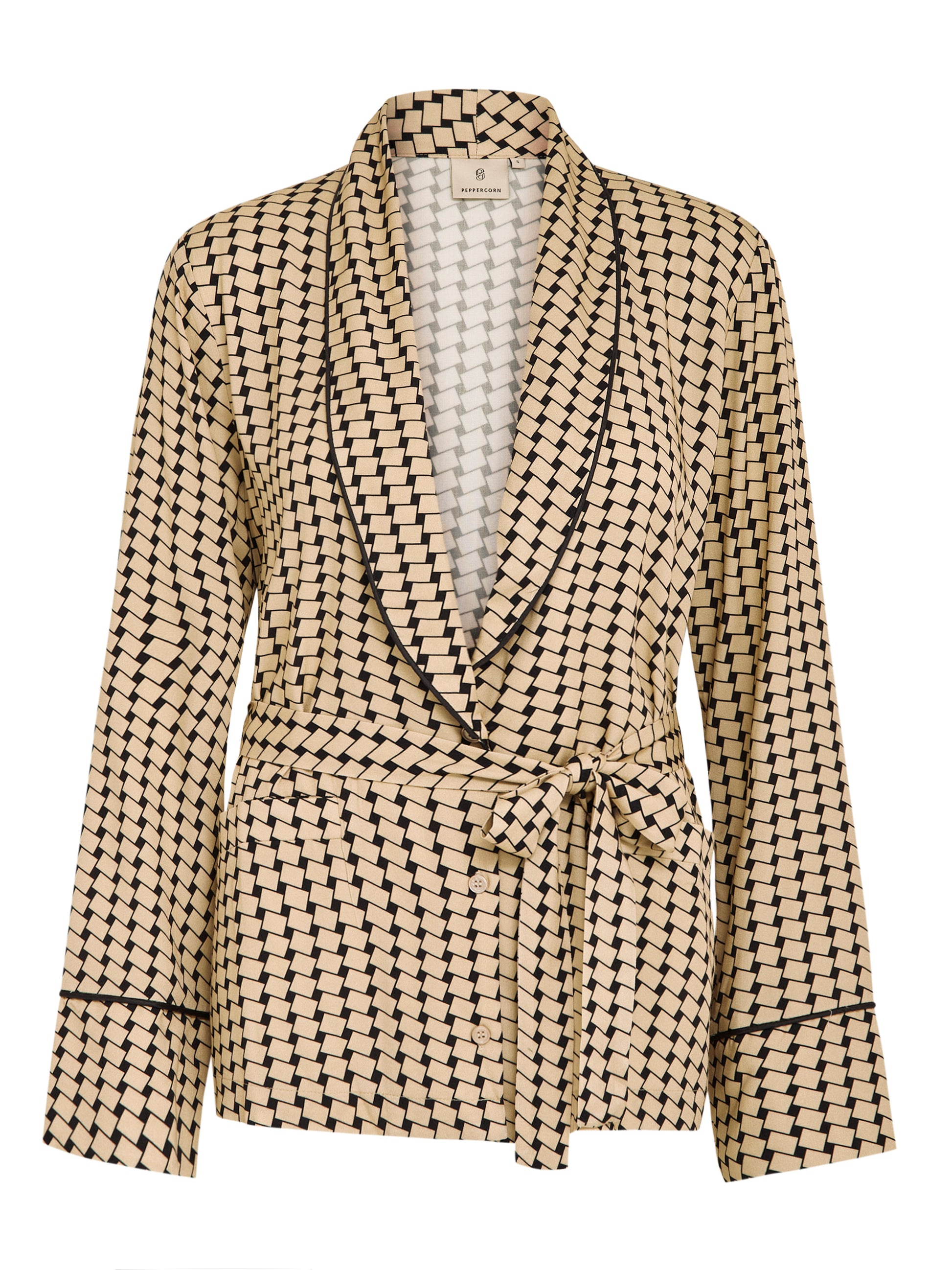 Opgrader din garderobe med denne elegante jakke fra Peppercorn, der kombinerer stil og komfort på bedste vis. Lavet af 100% LENZING™ ECOVERO™ viskose, tilbyder denne jakke en luksuriøs følelse og en let pasform, der gør den perfekt til både afslappede og formelle lejligheder.
