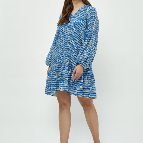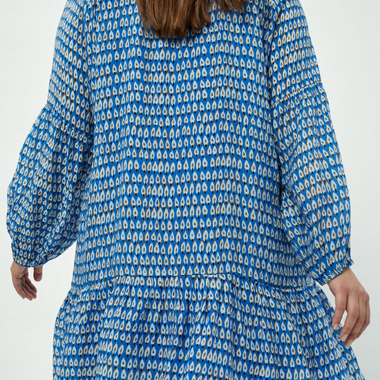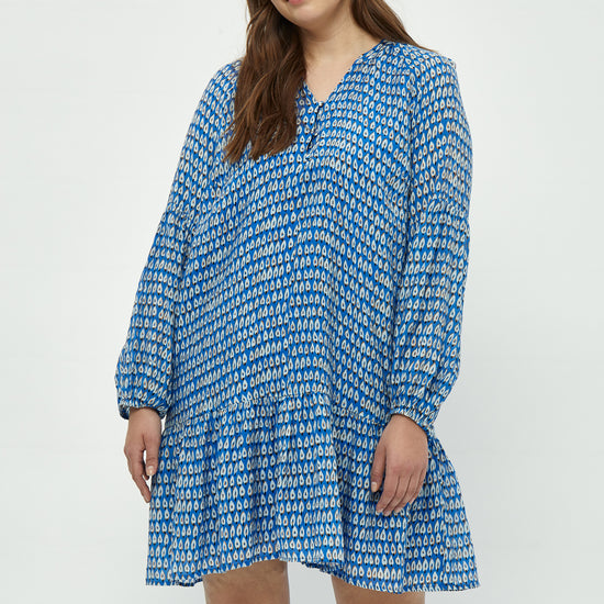 Opgrader din garderobe med denne smukke kjole fra Peppercorn, der kombinerer komfort og stil på elegant vis. Kjolen er designet i en iøjnefaldende Marina Blue Print farve, der tilføjer et friskt pust til din hverdagsstil. Med sin afslappede pasform og lette materiale, bestående af 70% viskose og 30% polyamid, er denne kjole perfekt til både hverdag og afslappede sociale begivenheder.