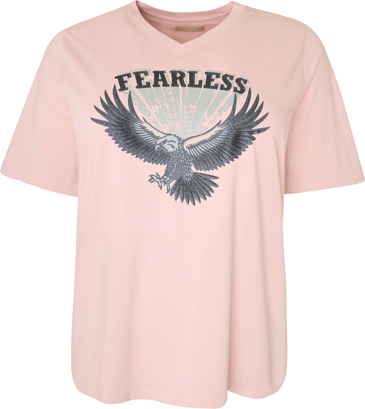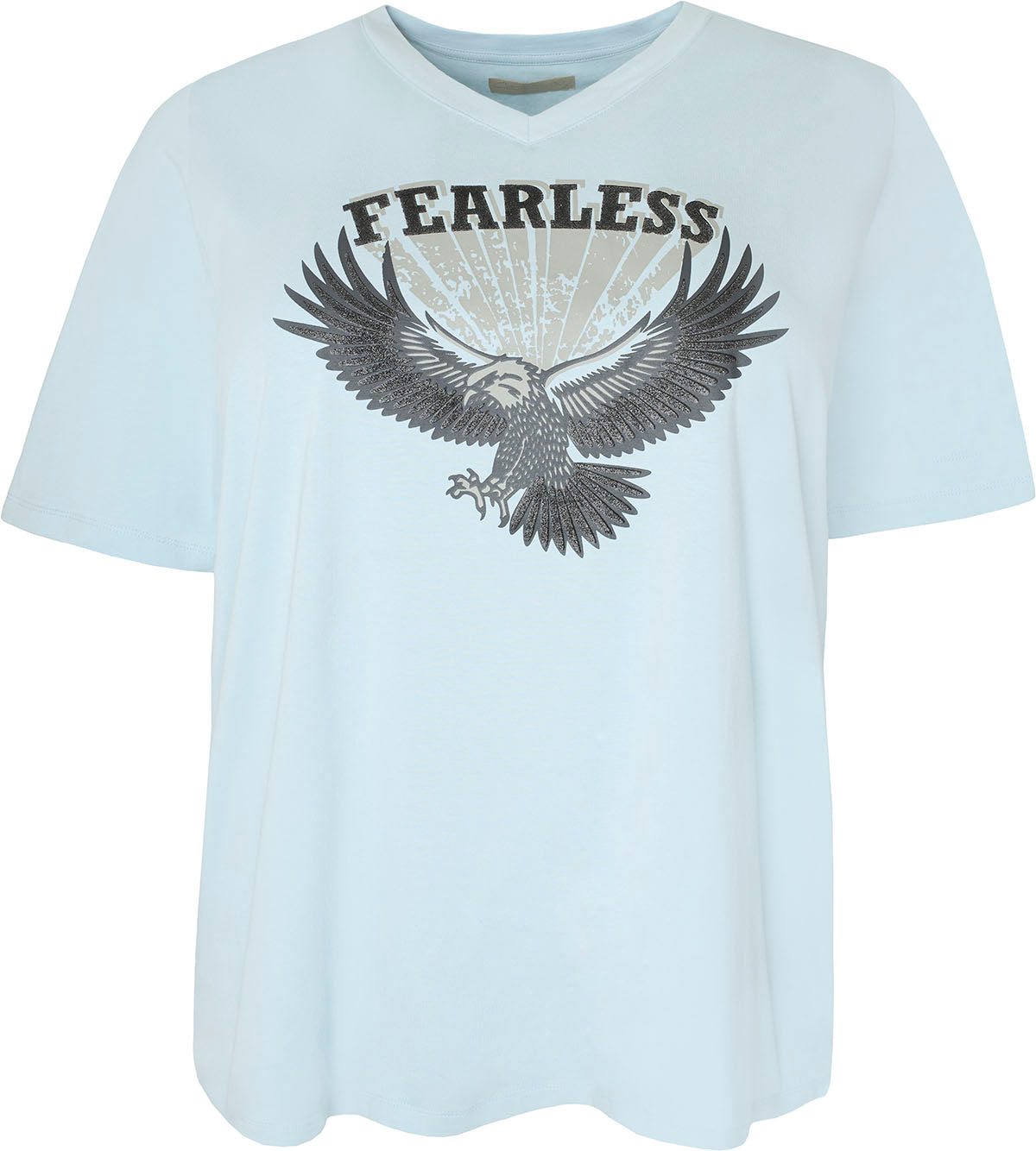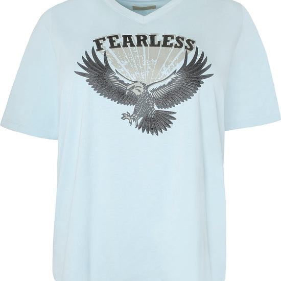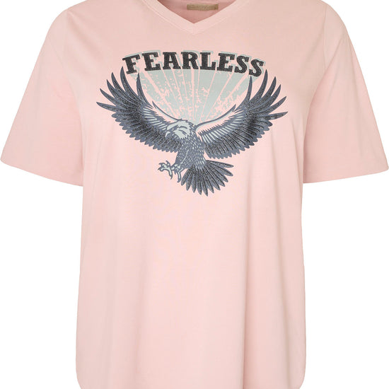 Den iøjnefaldende ørn- og "FEARLESS"-tryk på forsiden gør denne T-shirt til et statement-piece, der udstråler styrke og selvtillid. Uanset om du vælger den blå eller rosa kombination, passer denne T-shirt perfekt til både afslappede jeans og shorts, hvilket gør den til et alsidigt valg i garderoben.