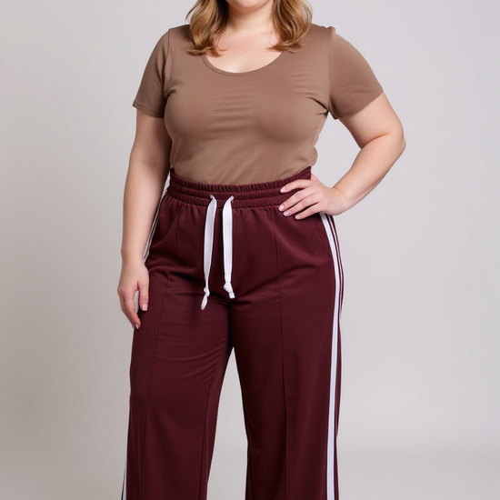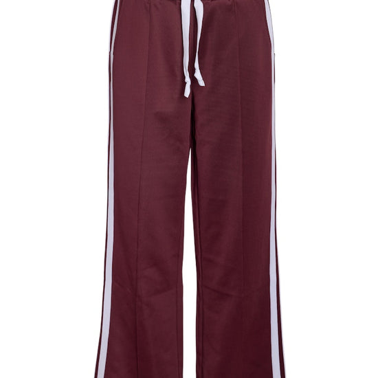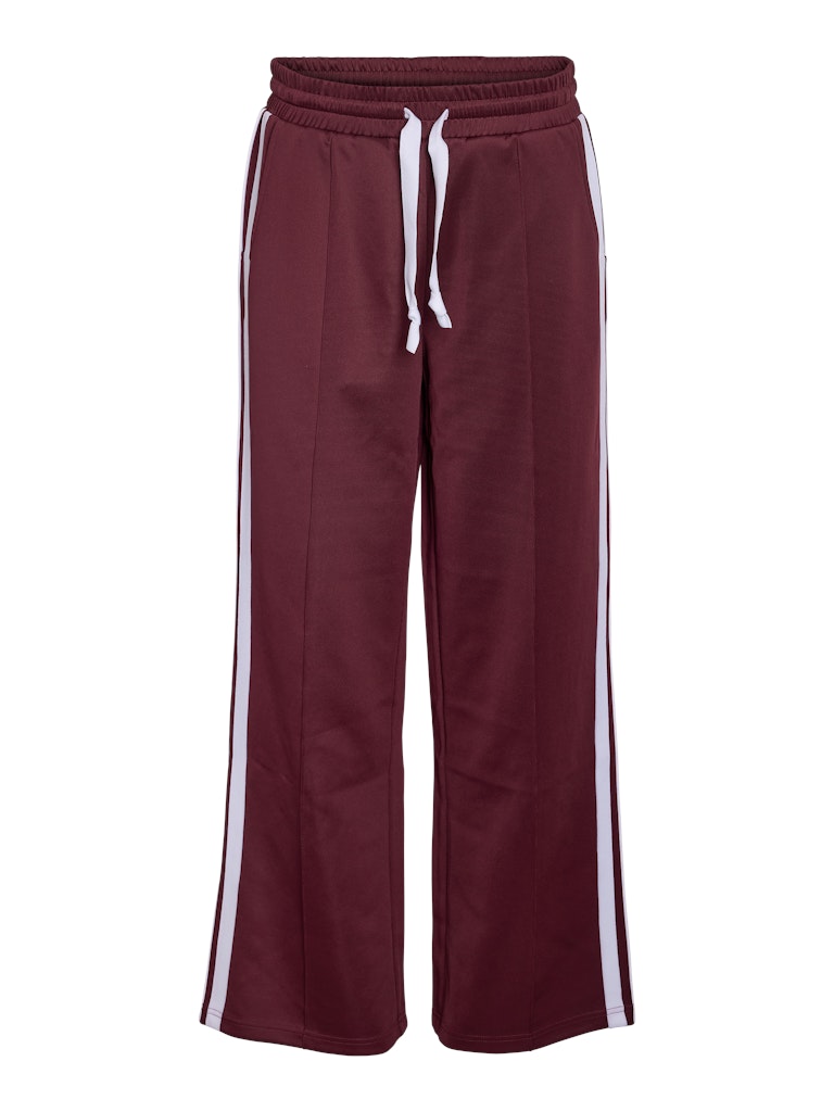 Disse bukser fra Noisy May Curve er designet med et relaxed fit, så du får maksimal komfort og bevægelsesfrihed. Den dybe bordeauxfarve ”Windsor Wine” kombineres med markante hvide striber langs benene for et sporty og stilfuldt look.