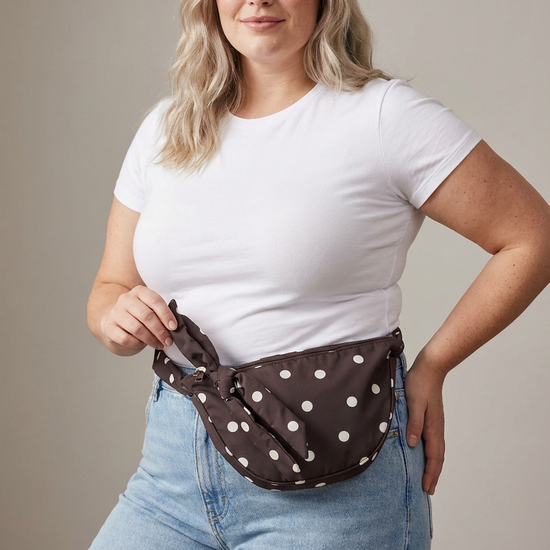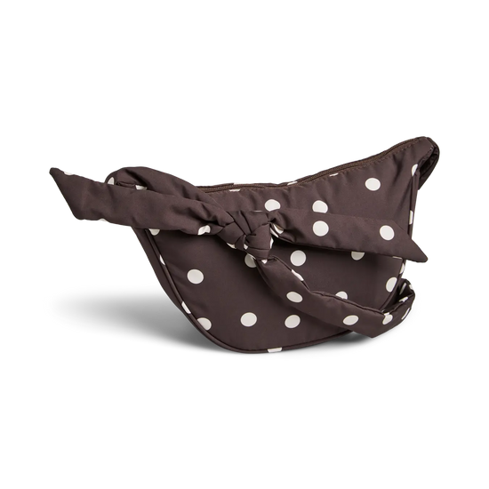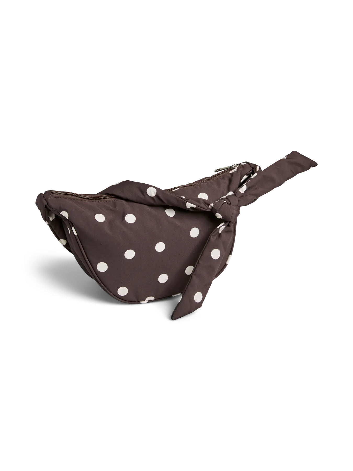 Denne PCAMANDA bumbag fra Pieces er det perfekte tilbehør, hvis du ønsker at kombinere funktionalitet med et feminint og legende tryk. Tasken byder på en dyb, varm brun nuance, der bliver lyst op af et klassisk mønster med hvide polkaprikker, hvilket skaber et stilfuldt blikfang.