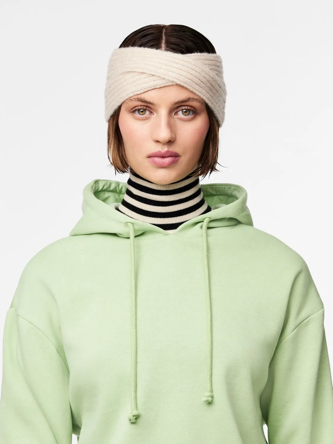 Dette elegante hårbånd fra Pieces er det ideelle tilbehør til de kolde måneder. Det er fremstillet med en flad strikmetode, der giver en ribkant og passer perfekt. Hårbåndet er designet til at holde dig varm og stilfuld, når temperaturen falder. Sammensætningen af 50% genanvendt polyester, 22% akryl, 13% nylon, 10% uld og 5% elastan sikrer både varme og komfort.