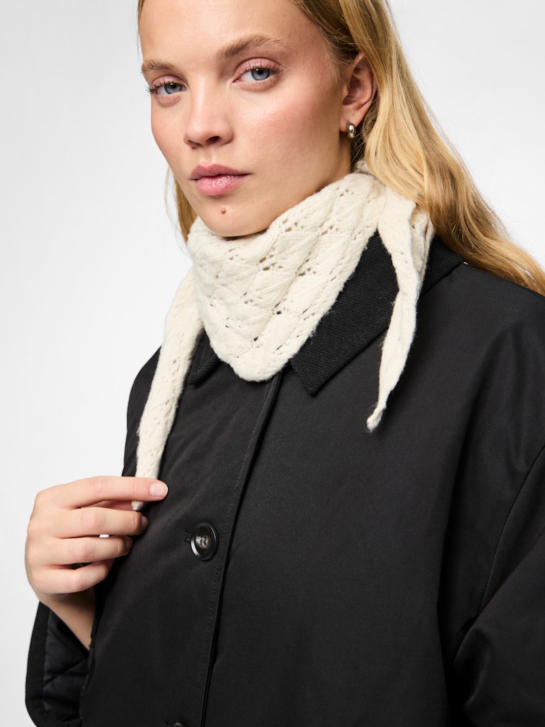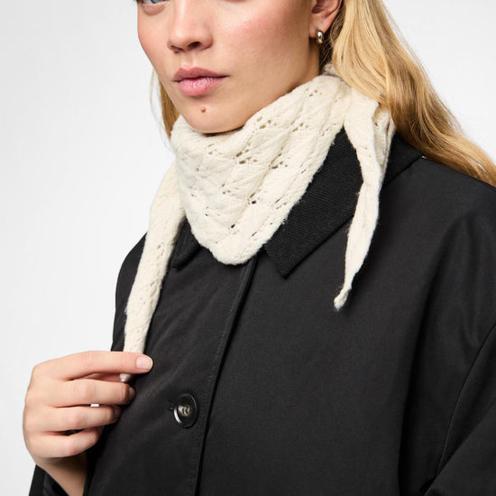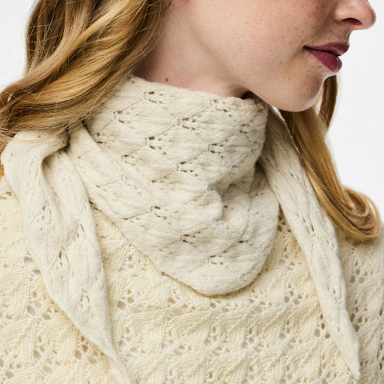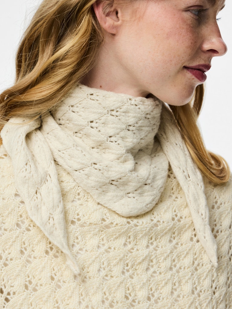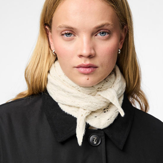 Dette tørklæde fra Pieces kombinerer klassisk design med moderne komfort. Strikket i en blød kvalitet af 55% genanvendt polyester og 45% polyester, får du et let og luftigt tørklæde med en smuk hulstruktur. Perfekt til både hverdag og fest.