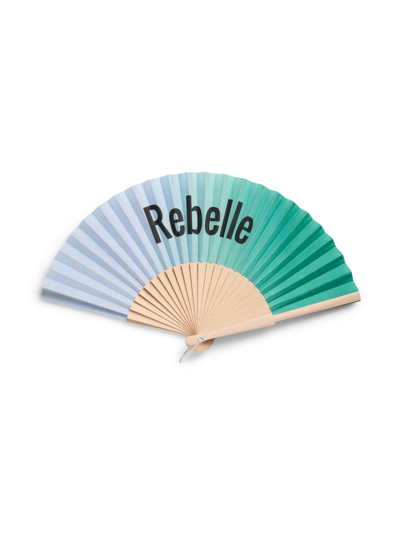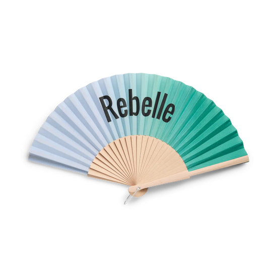 Denne elegante håndvifte fra Pieces er det ideelle tilbehør til de varme dage, hvor du har brug for en kølende effekt med stil. Viften har et smukt visuelt udtryk med et farveforløb, der glider fra en helt lys tone over i en klar mintgrøn farve, og den prydes af teksten "Rebelle" i midten for et kantet look.