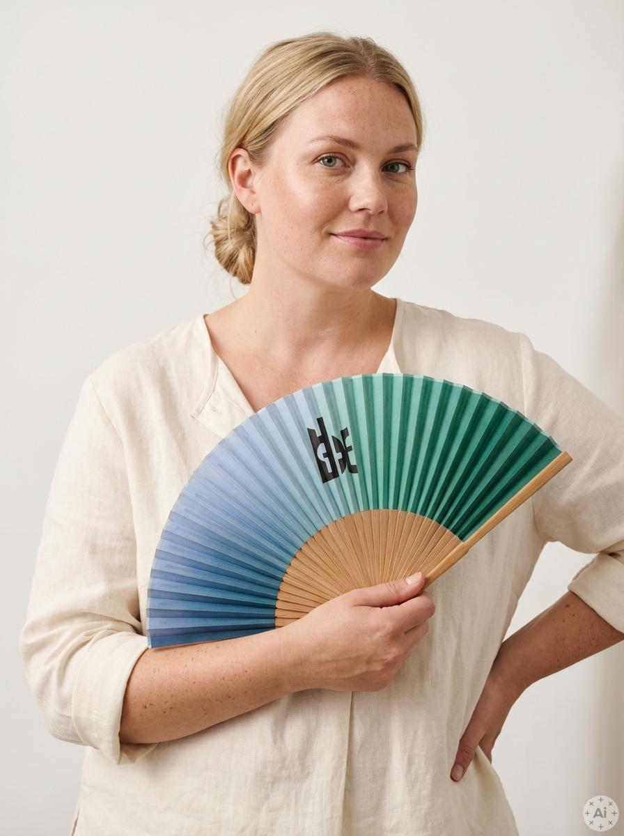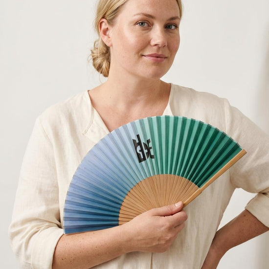 Viften ligger godt i hånden takket være de glatte trælameller og det lette materiale, der gør den nem at vifte med. Det friske og moderne design gør den oplagt at style sammen med lette sommerkjoler eller som en praktisk detalje til en varm havefest.