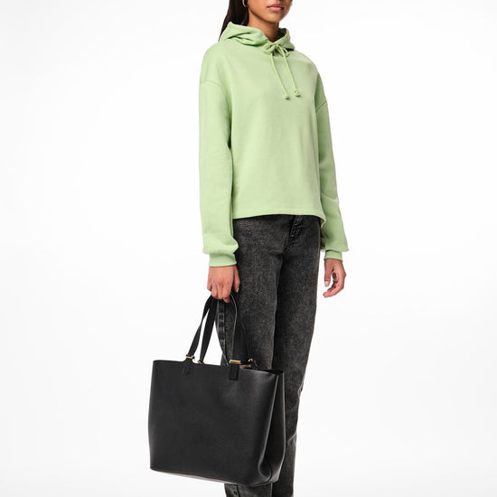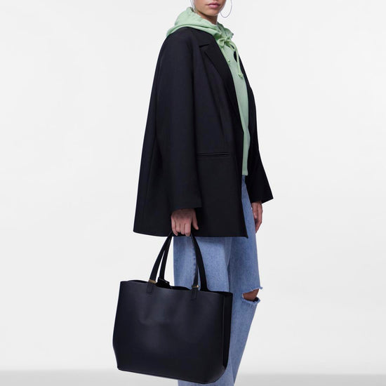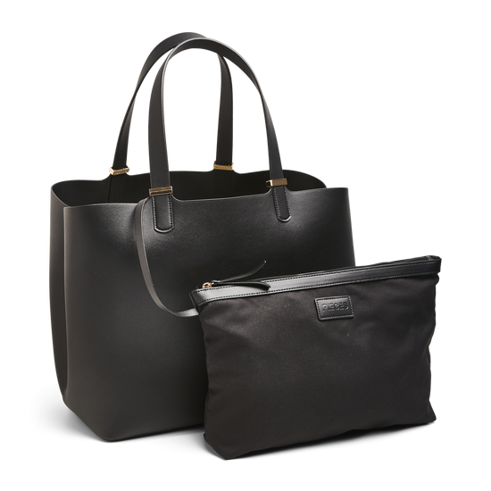 Denne elegante shopper fra Pieces er det perfekte eksempel på en klassiker. Tasken er udført i en stilren sort farve og er lavet af 100% polyester med en polyurethan-belægning, der giver en slidstærk og luksuriøs finish. Indvendigt finder du en lomme med lynlås, der er ideel til opbevaring af mindre værdigenstande, så du altid har dem lige ved hånden.