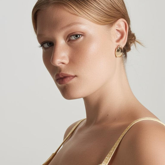 Øreringene er lavet af en kombination af zink og titanium, hvilket sikrer en holdbar og stilfuld finish. Denne sammensætning giver dem en let vægt, hvilket gør dem behagelige at bære hele dagen. Med deres tidløse design og alsidighed er disse øreringe et must-have i enhver smykkesamling. Kombiner dem med andre smykker fra vores smykkekollektion eller find det perfekte outfit blandt vores overdele til at fuldende dit look.