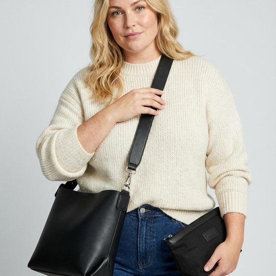 En af de helt store fordele ved denne taske er den medfølgende indvendige clutch, der fungerer som en sikker opbevaring til dine værdigenstande. Mens hoved rummet giver hurtig adgang, sørger den mindre taske med lynlås og logo-badge for, at nøgler, pung og makeup er i sikkerhed. Det minimalistiske sorte design gør det nemt at matche tasken med forskellige accessories for et komplet og gennemført look.