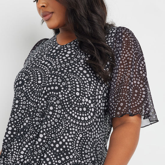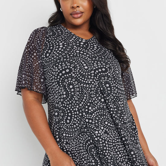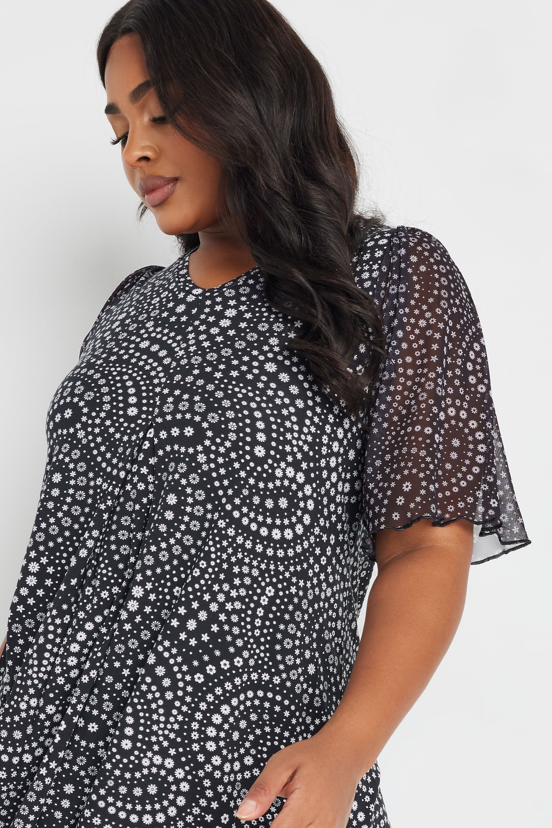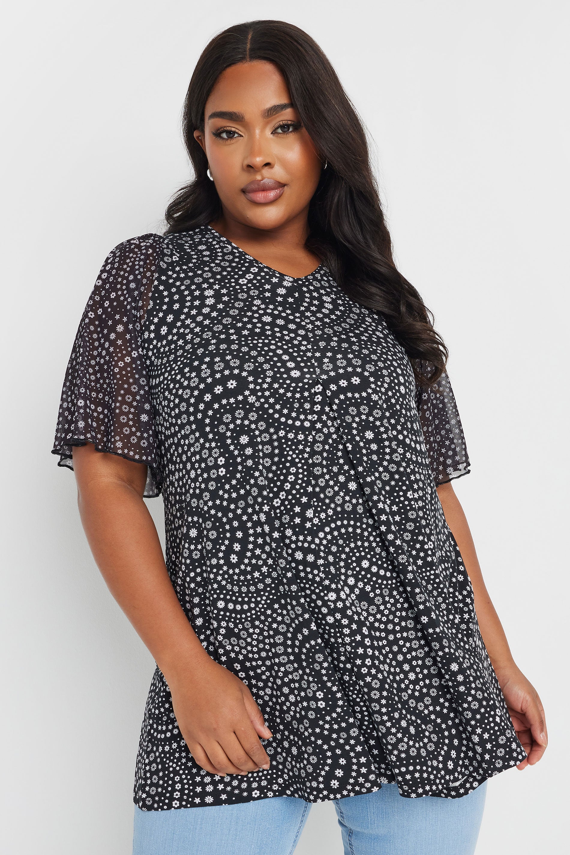 Opgrader din garderobe med denne elegante bluse fra Yours. Dens smukke daisy print giver et frisk og moderne udtryk, mens de korte mesh ærmer tilføjer et strejf af elegance, perfekt til både hverdagsbrug og festlige lejligheder. Med en V-udskæring og læg-detaljer , fremhæver denne bluse din figur på en flatterende måde.