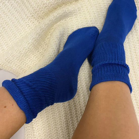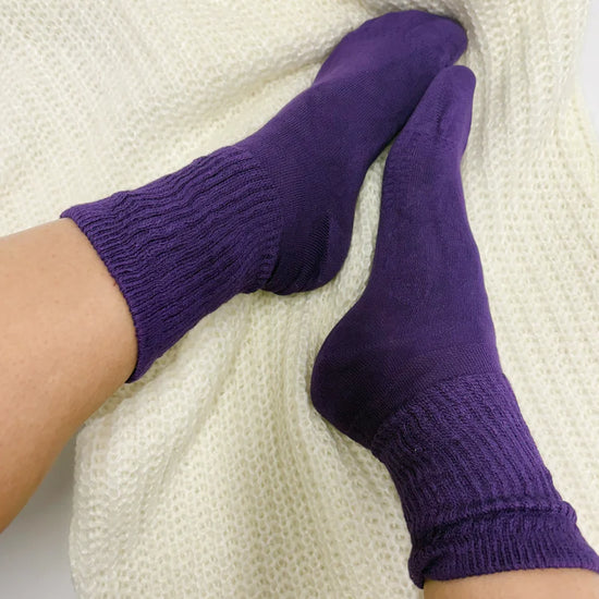 Onesize bambus sokker fra Pamela Mann med løs ribkant. Strømperne sidder til på foden, og er perfekte til lange dage, da de ikke strammer om anklen.