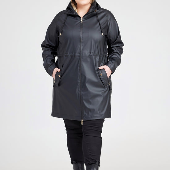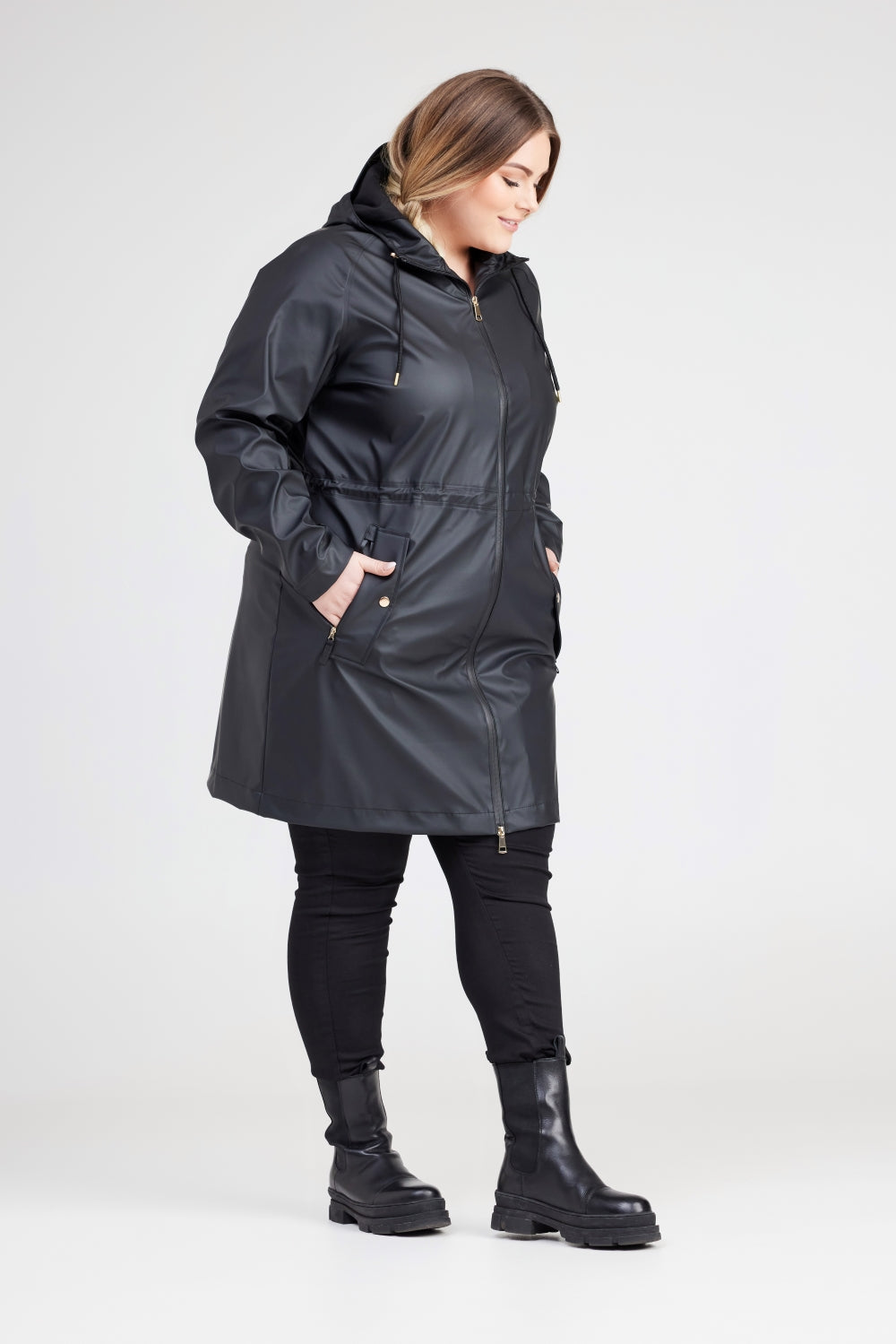 Jakken måler 99,5 cm i længden langs fronten og har et brystmål på 130 cm i størrelse 46, hvilket gør den ideel til en række forskellige kropstyper. Den fås i størrelserne 44 til 54 og har en elegant sort farve med gyldne accenter, der tilføjer et strejf af luksus til det praktiske design. For at holde jakken i topform anbefales maskinvask ved 30°C. Opdag flere elegante jakker i vores overtøjskategori og find den perfekte match til din garderobe.
