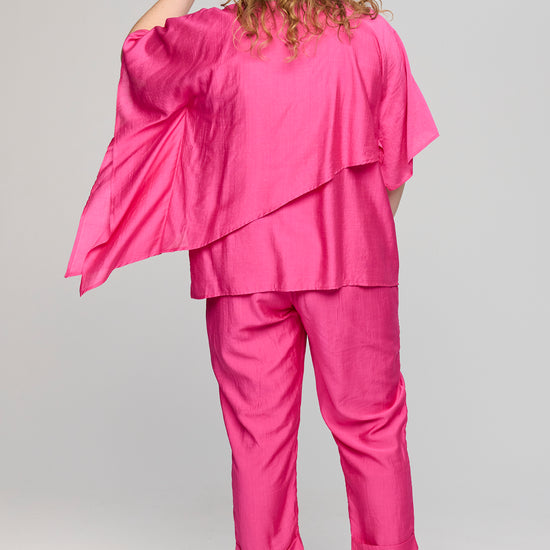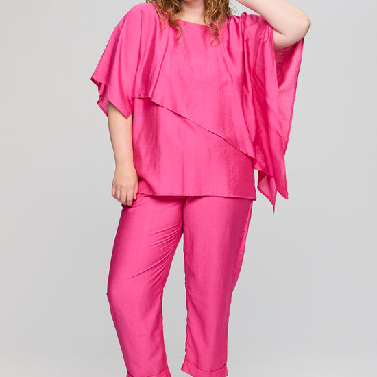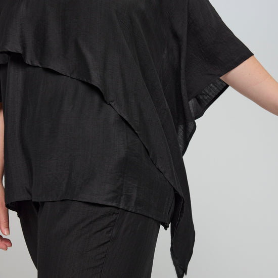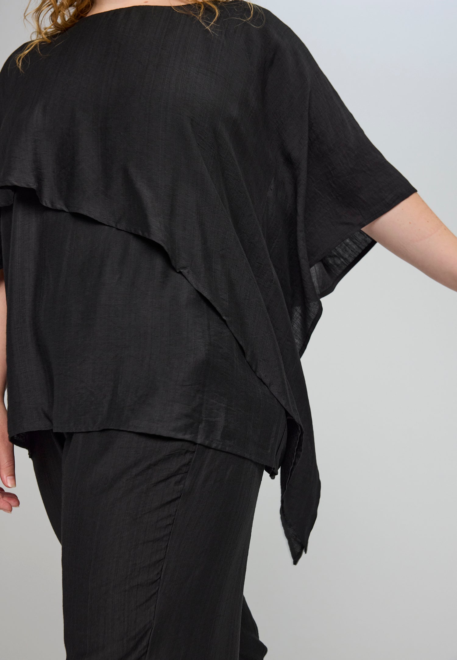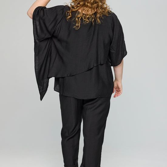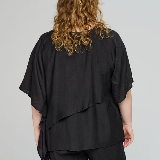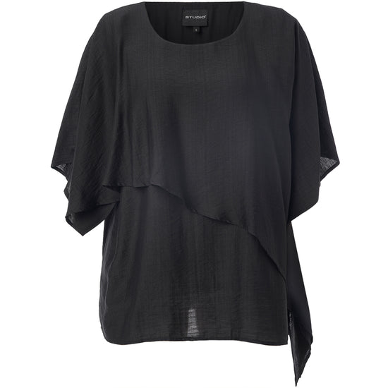 Denne smukke overdel fra Studio byder på en helt fantastisk silhuet, der falder blødt og naturligt ned over kroppen. Designet er præget af en flot asymmetrisk detalje hen over fronten, som giver et unikt og svævende udtryk, der skiller sig ud blandt andre klassiske plus size bluser.