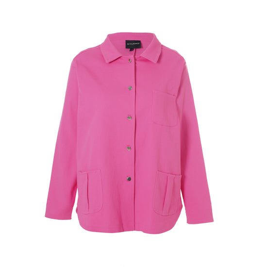 Oplev den perfekte kombination af stil og funktion med denne cool jakke fra Studio. Jakken fås i farverne pink og sand, og er fremstillet i en elastisk bomuldsblanding bestående af 97% bomuld og 3% elastan. Designet inkluderer en klassisk skjortekrave og en fuld længde knaplukning, som giver et tidløst og elegant look. Den er yderligere udstyret med en brystlomme og to praktiske lommer på siderne, hvilket gør den både trendy og funktionel.