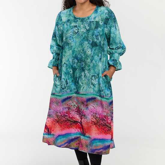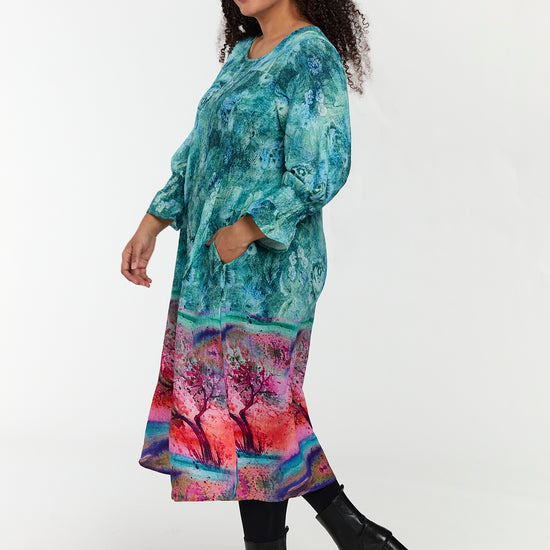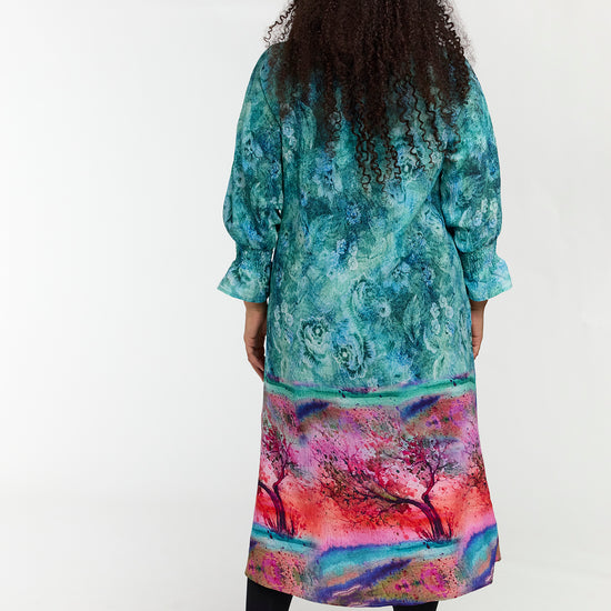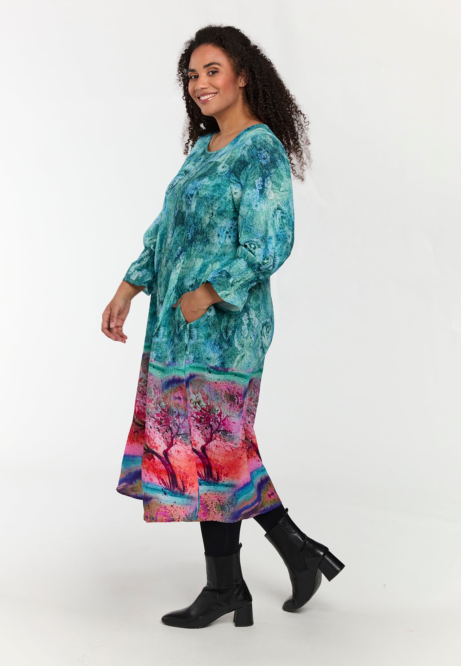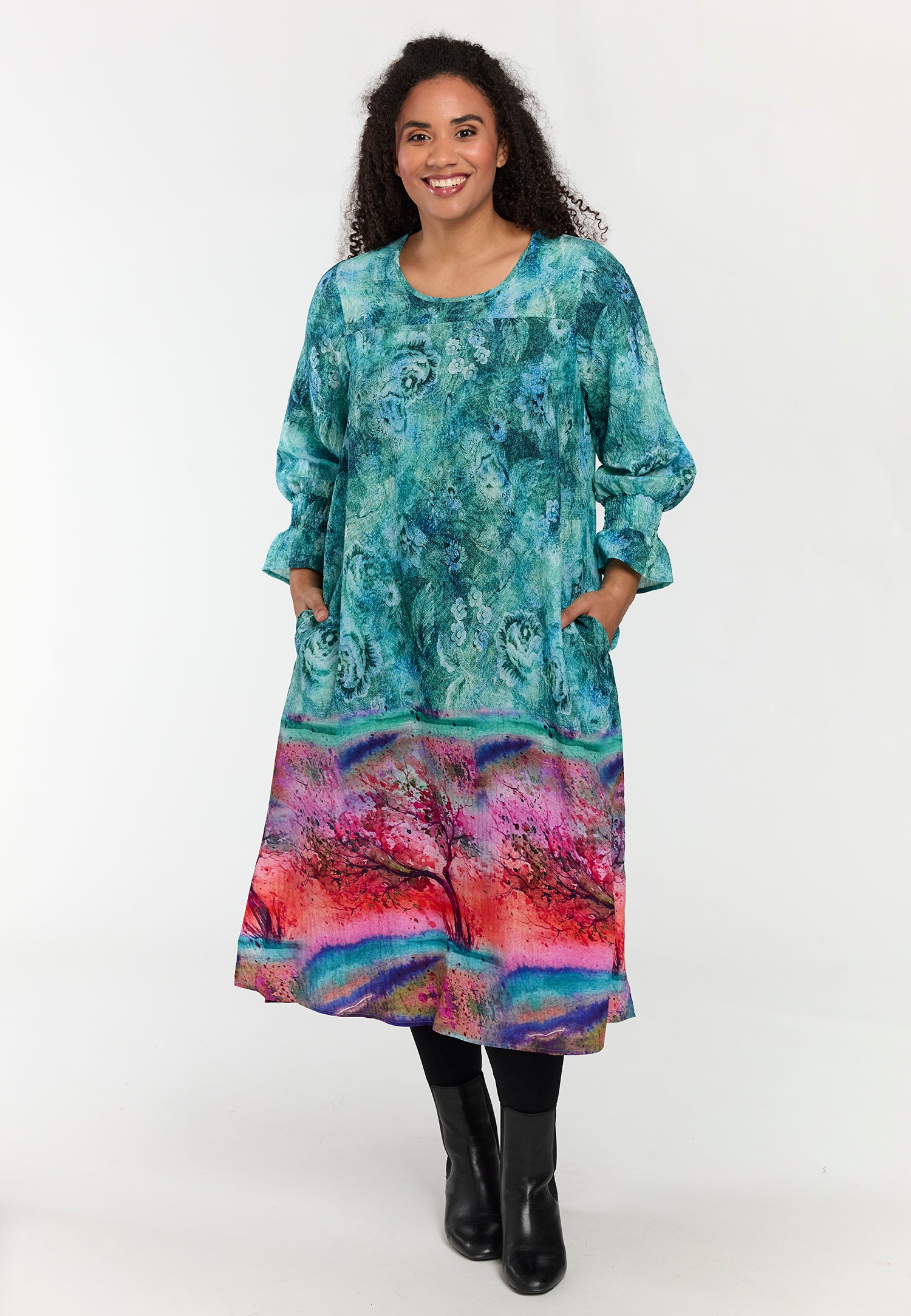 Kunstnerisk kjole fra Studio – feminin komfort i blå og pink