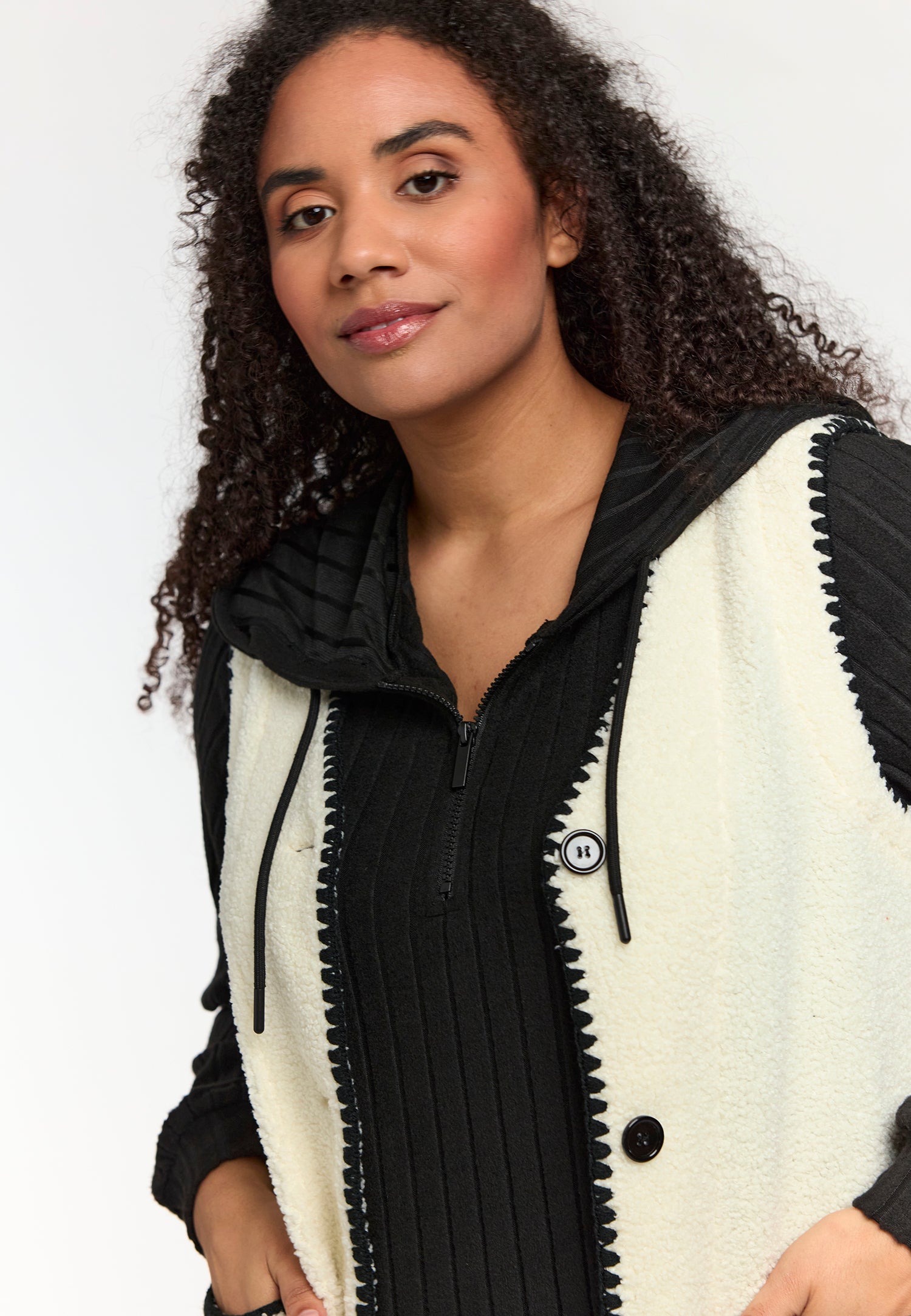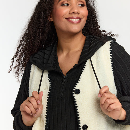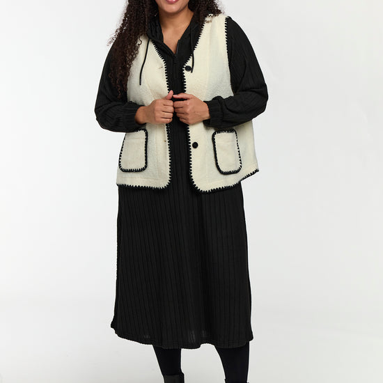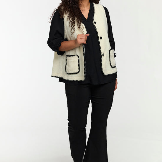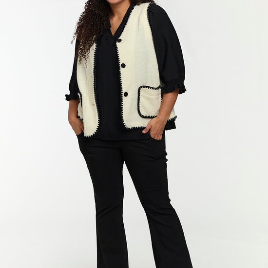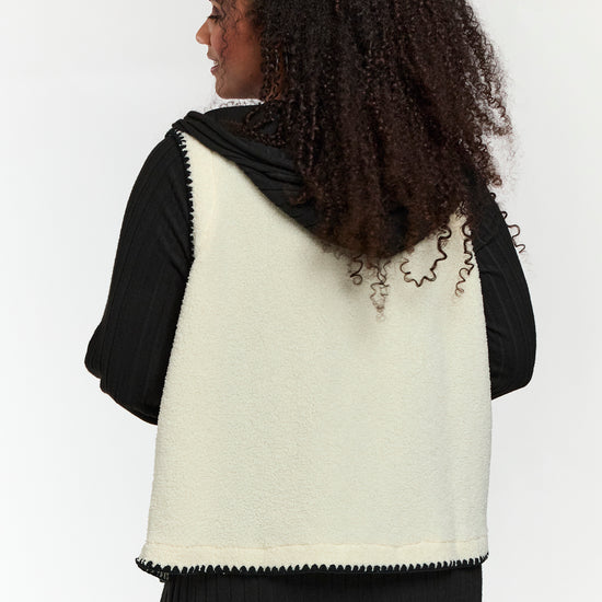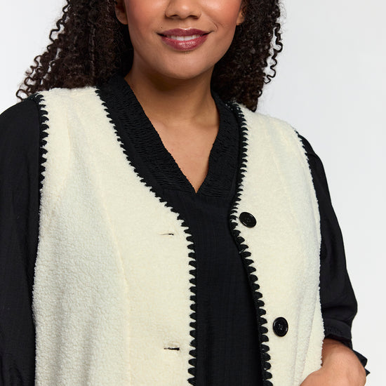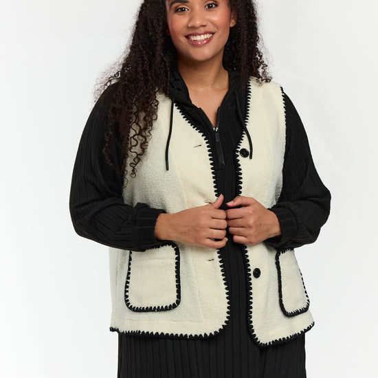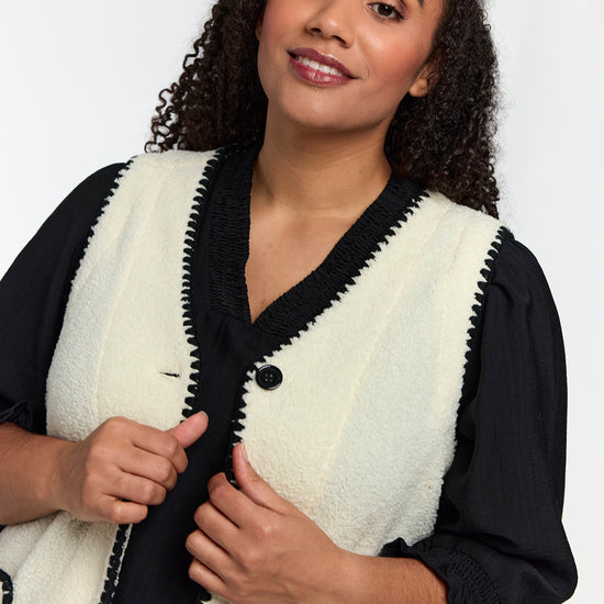 Blød teddy vest med kontrastdetaljer