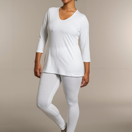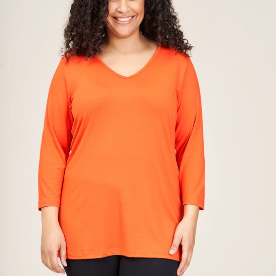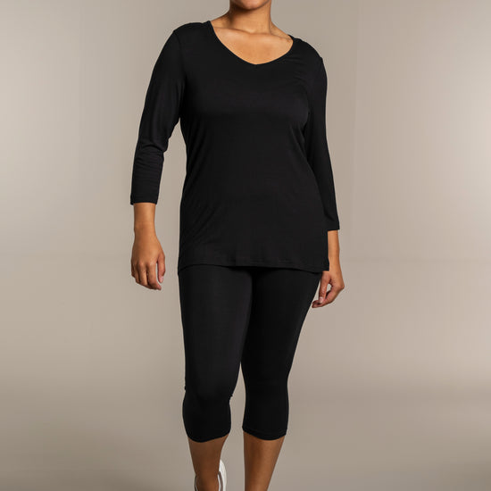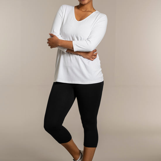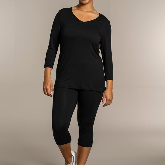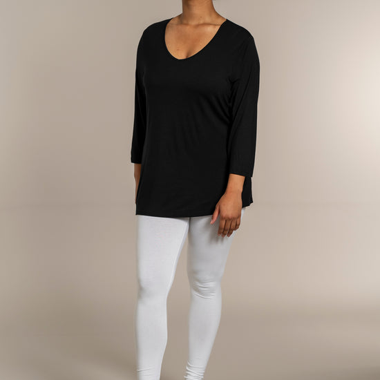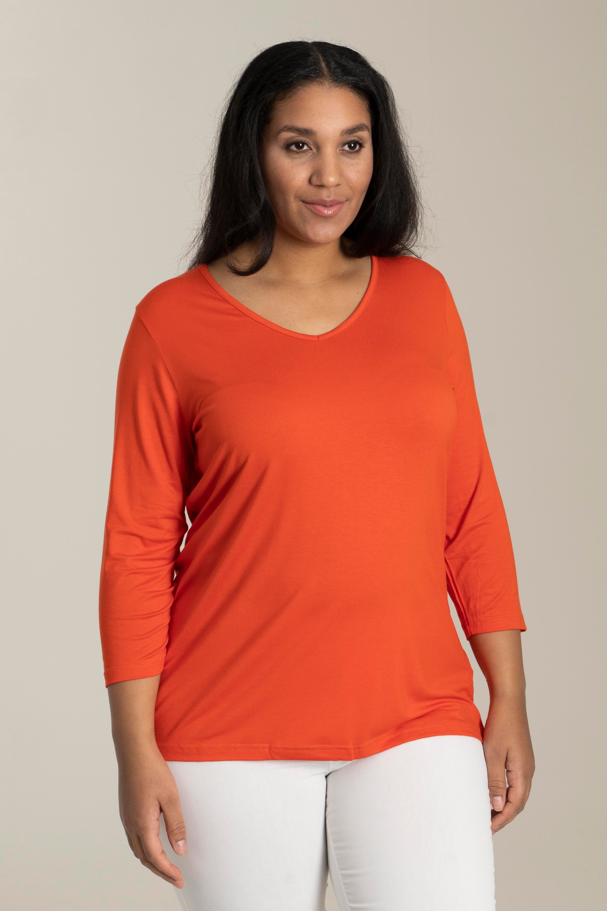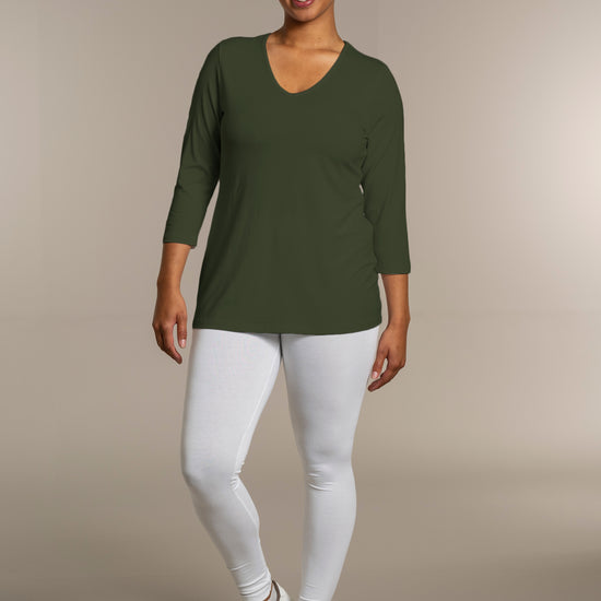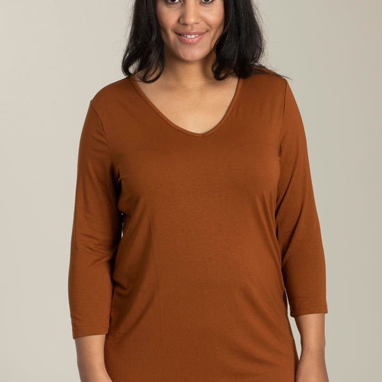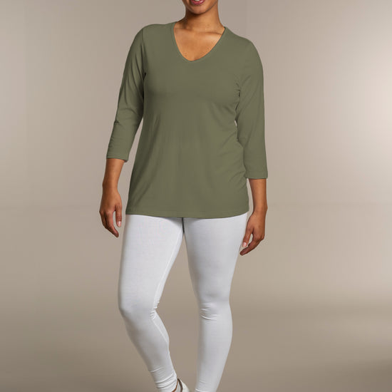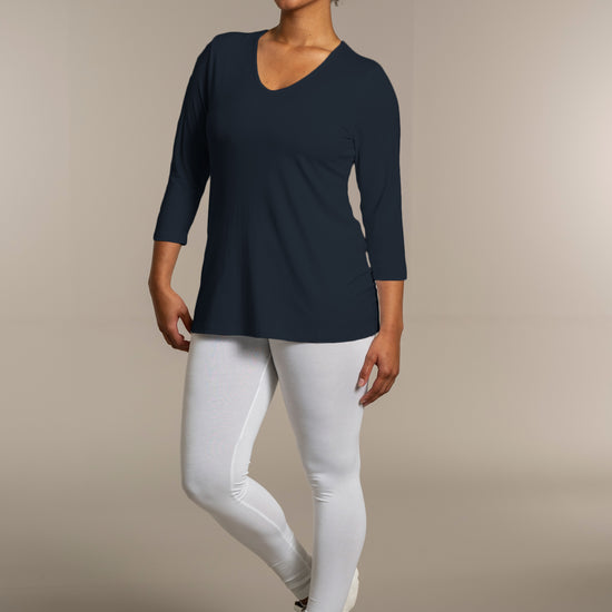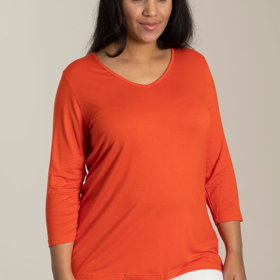 Sandgaard basisbluse med V-hals og 3/4 ærmer
