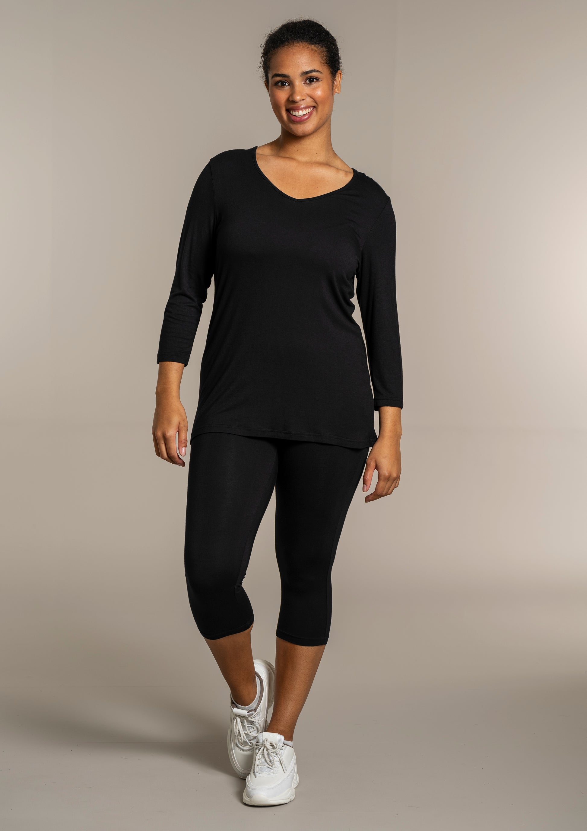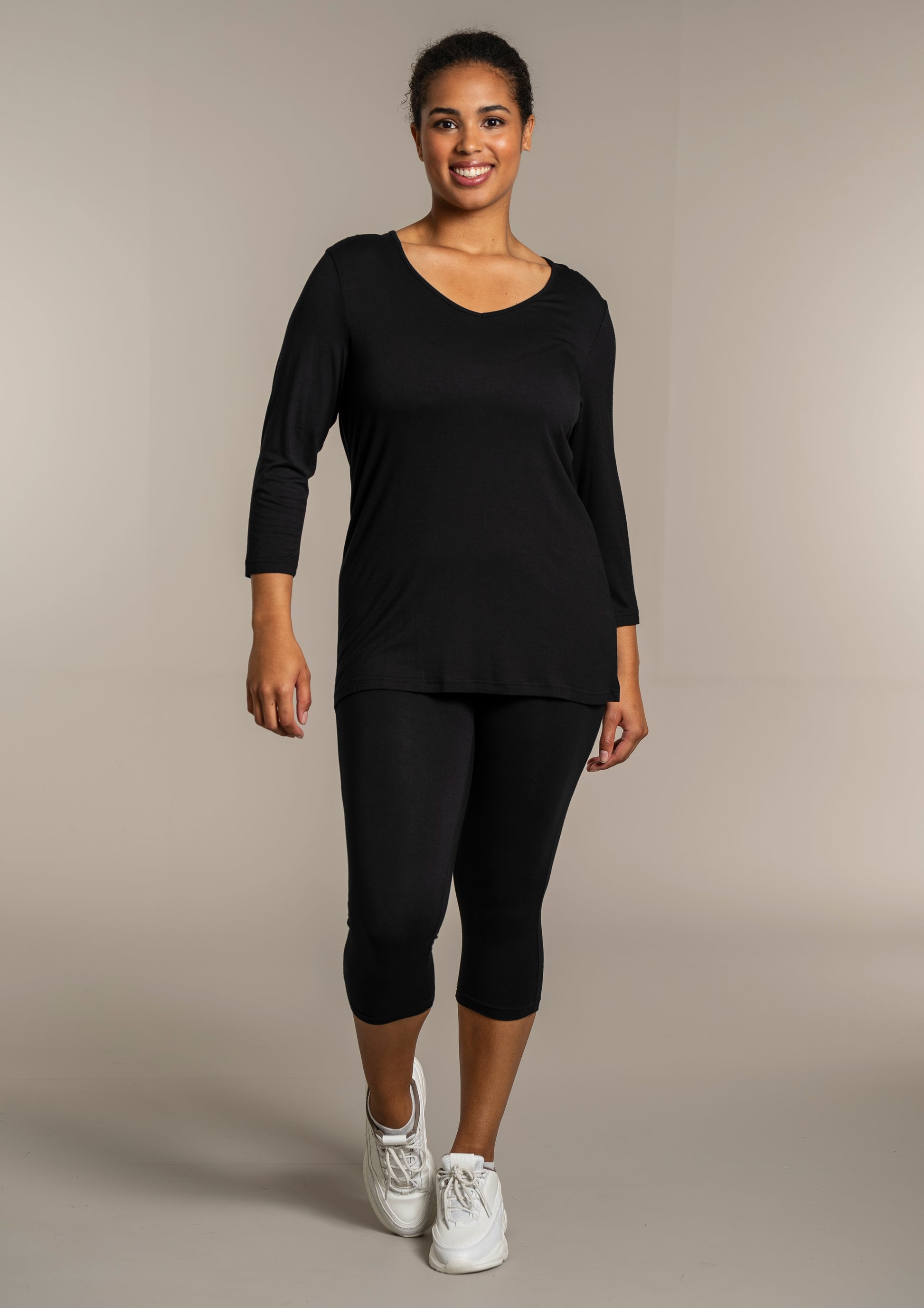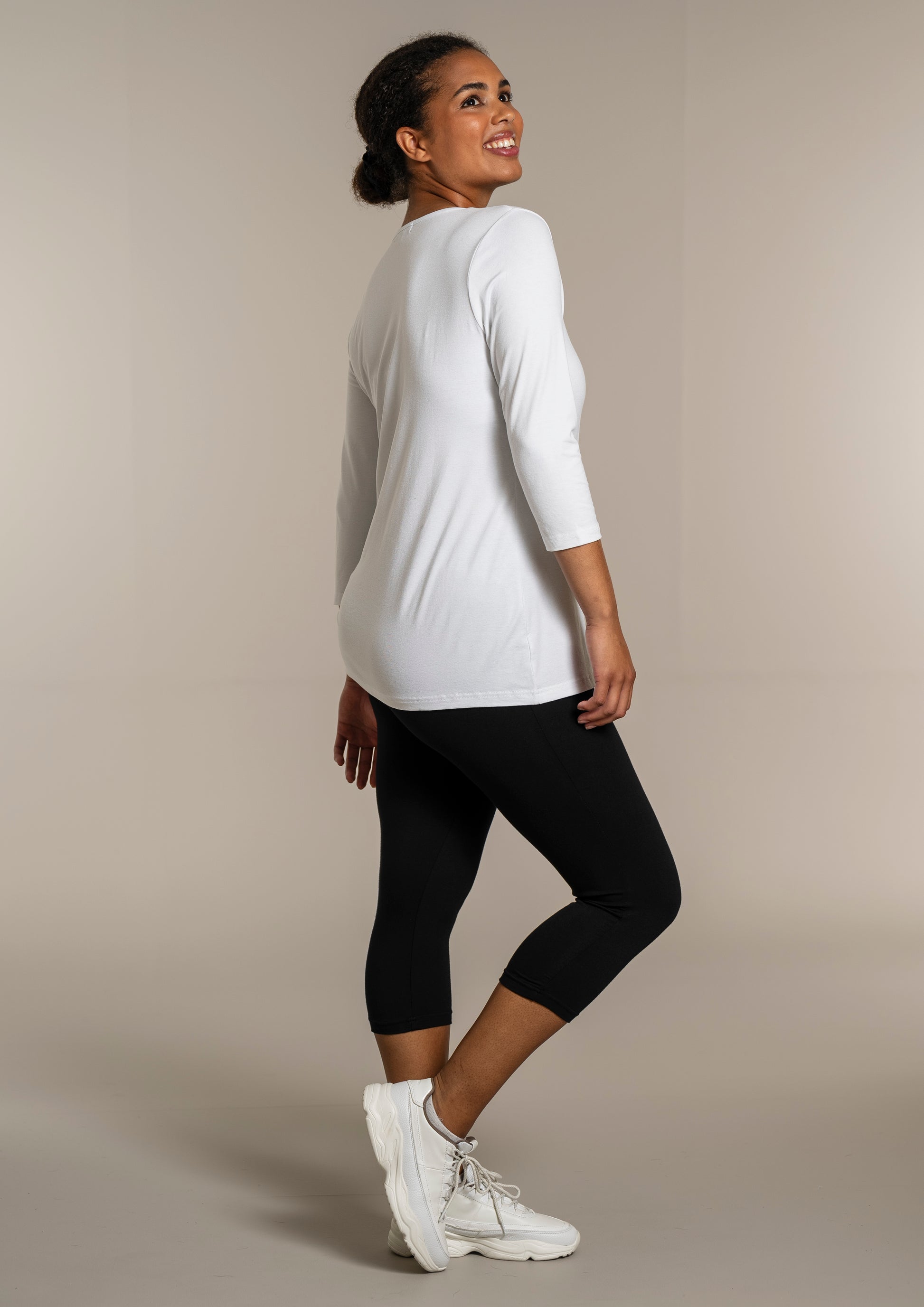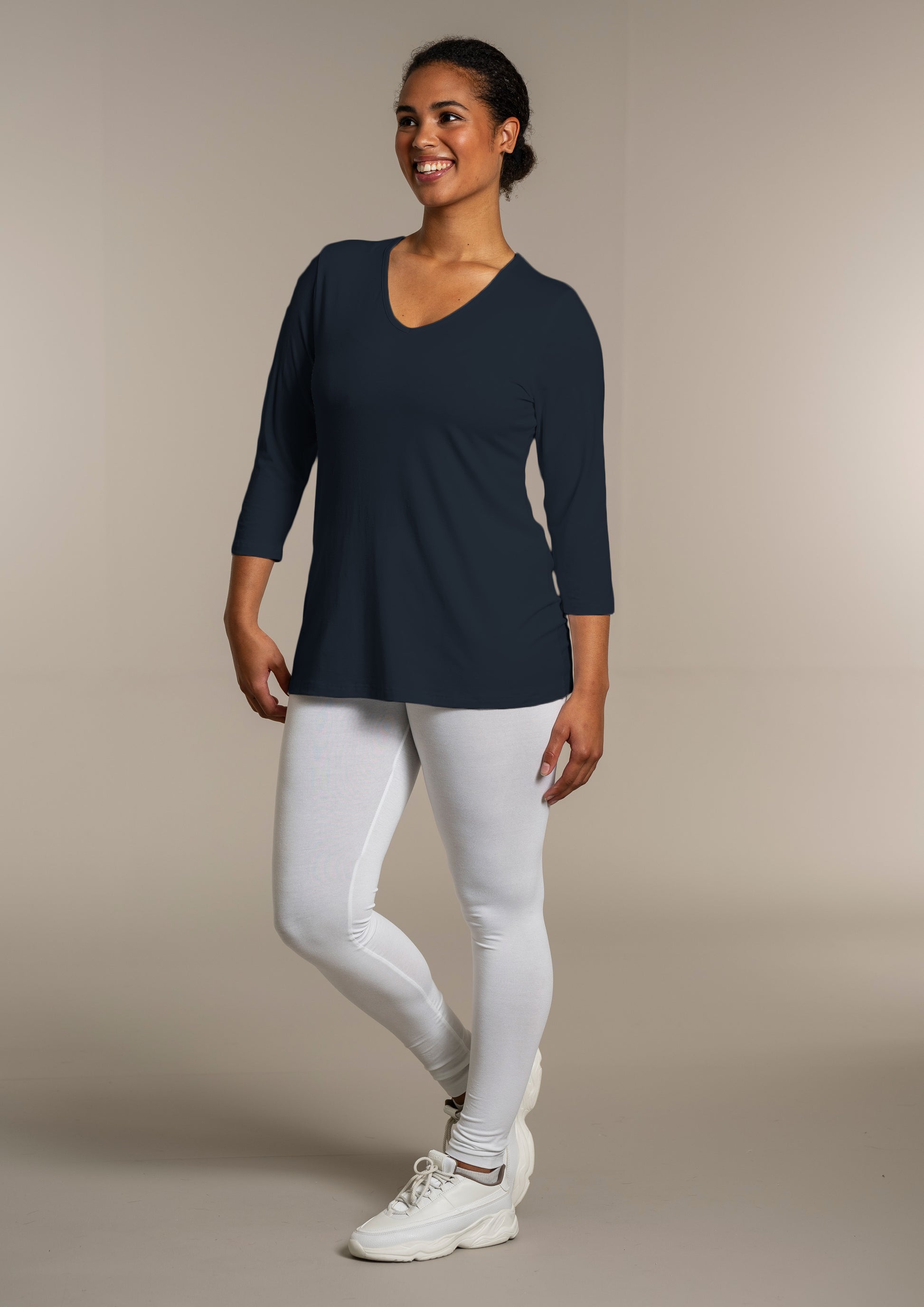 - 3/4 ærmer – perfekte til skiftende årstider