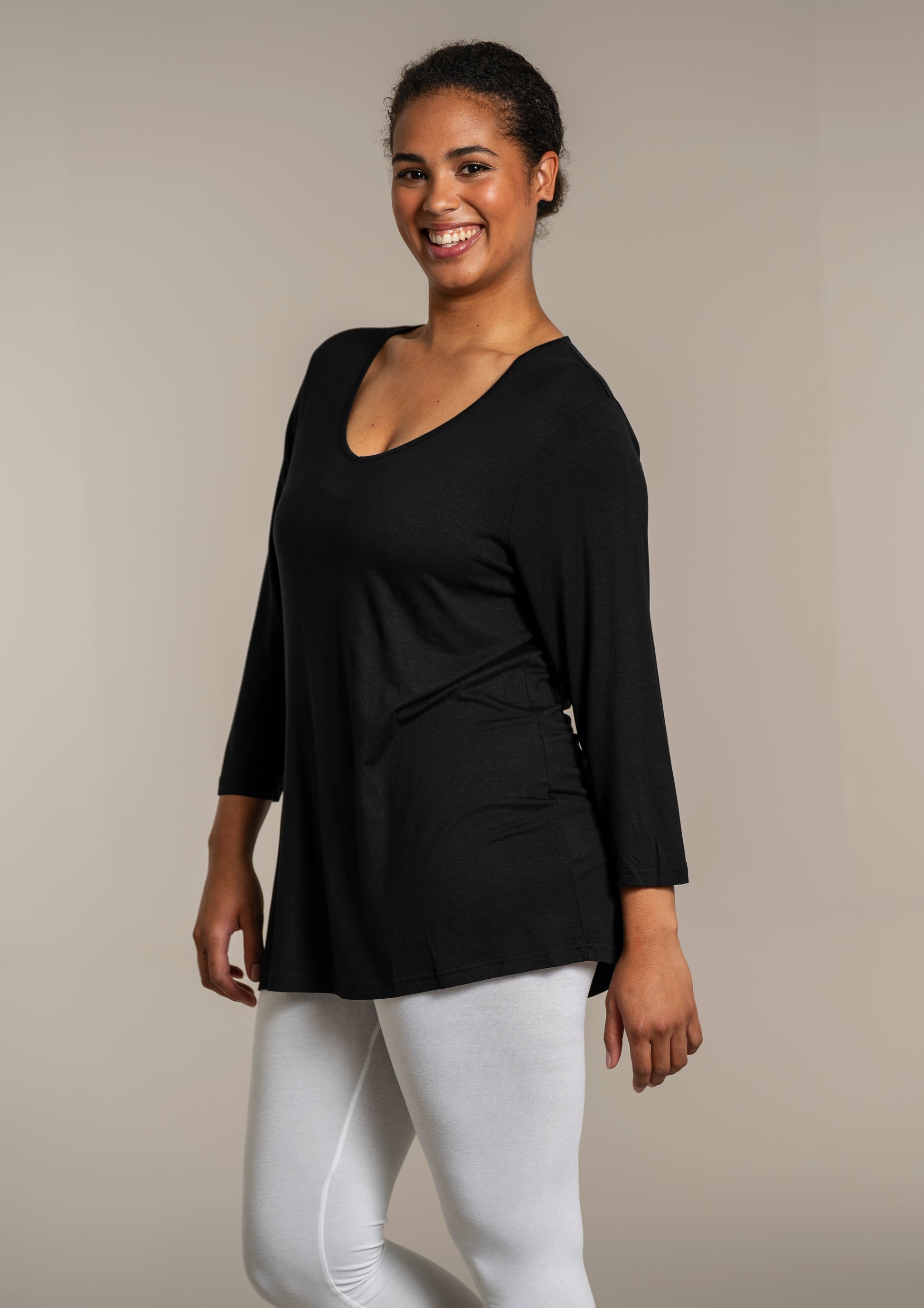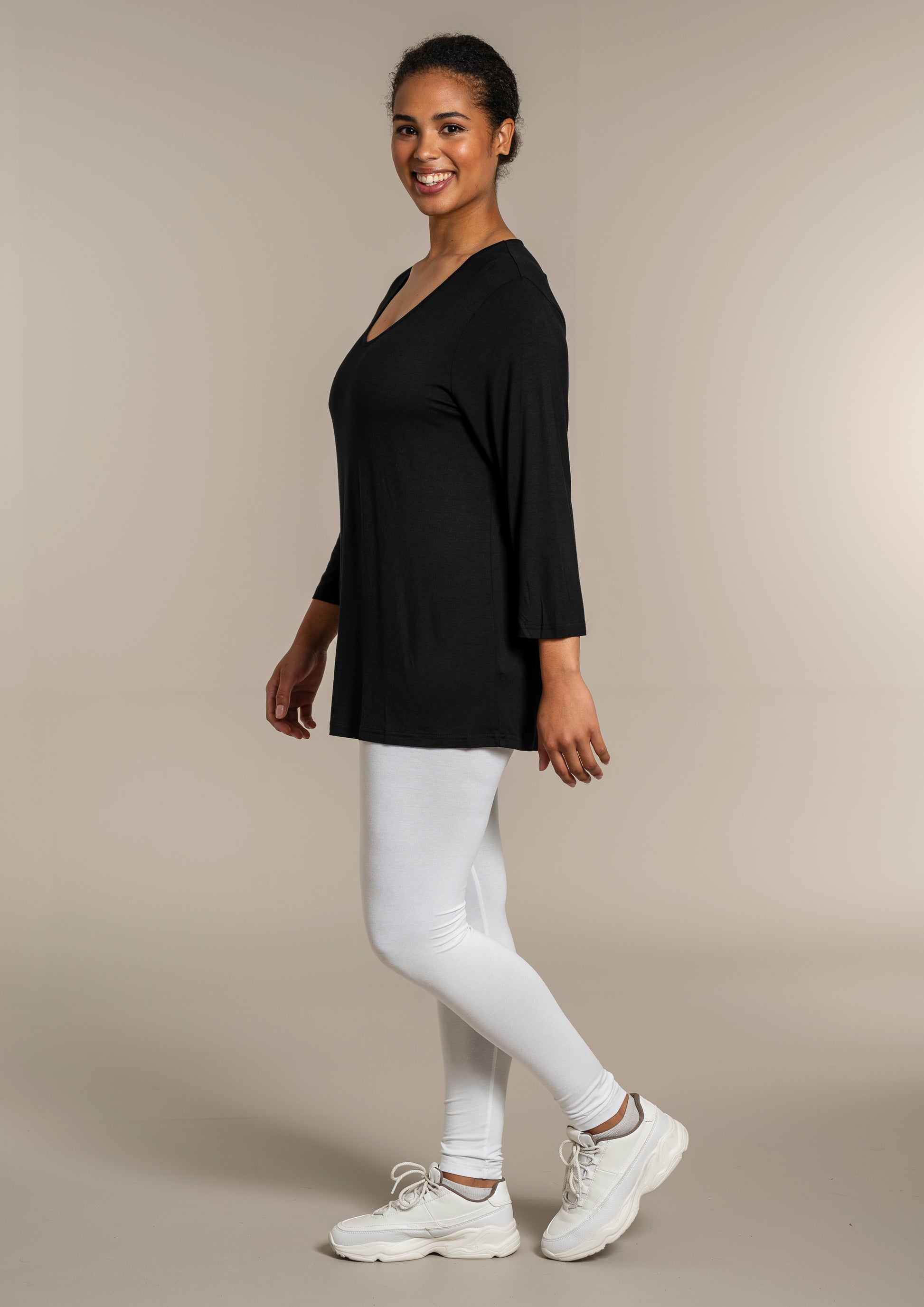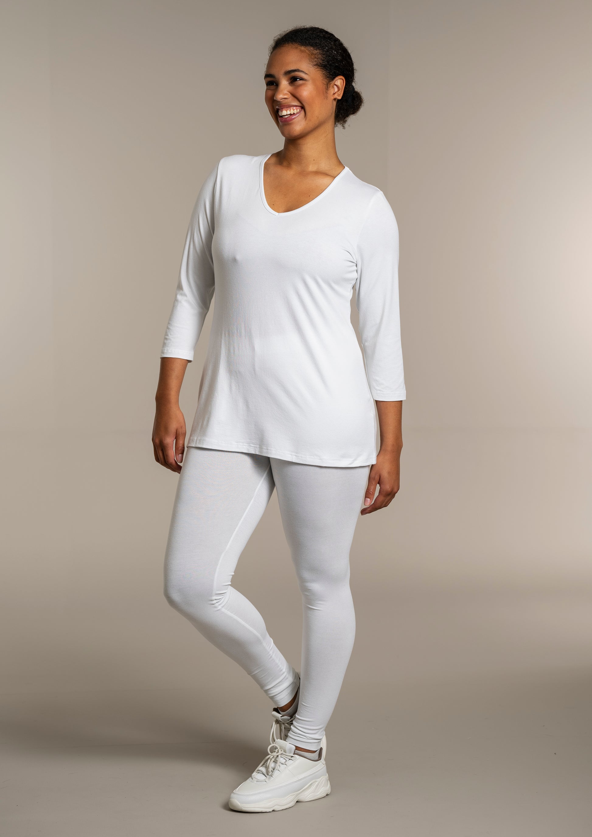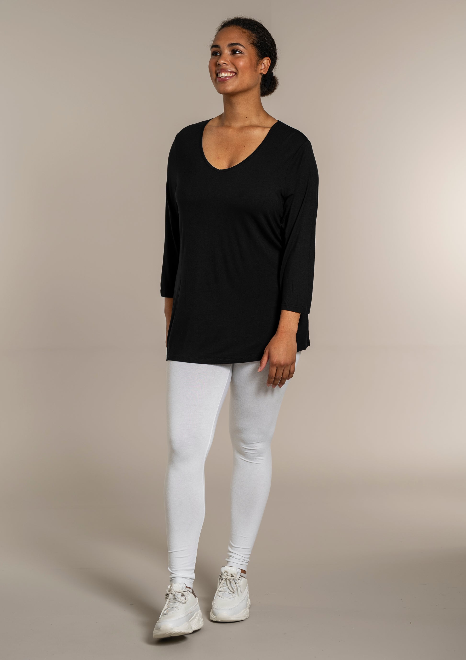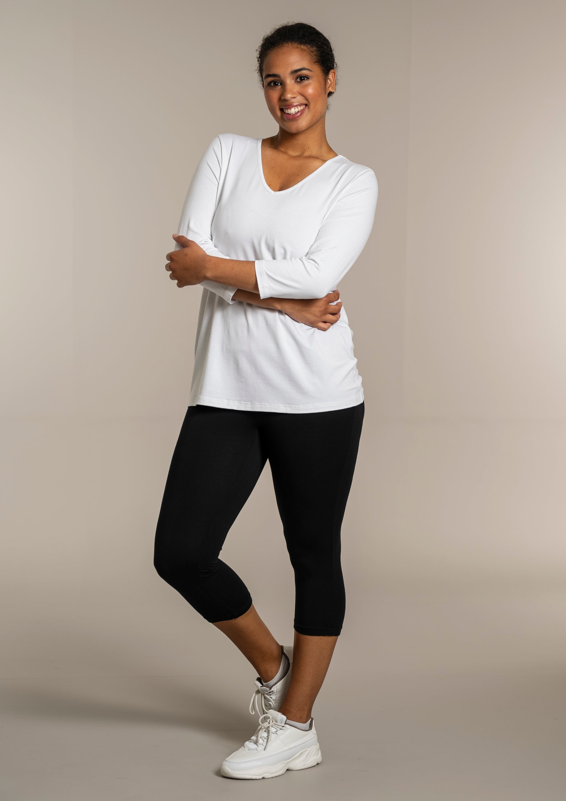 - 3/4 ærmer – perfekte til skiftende årstider