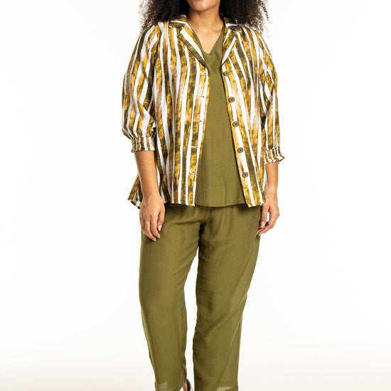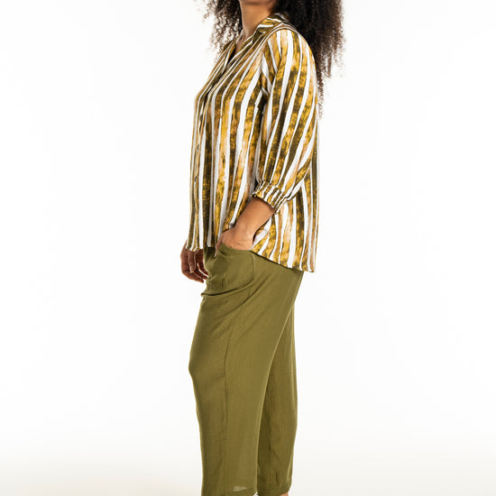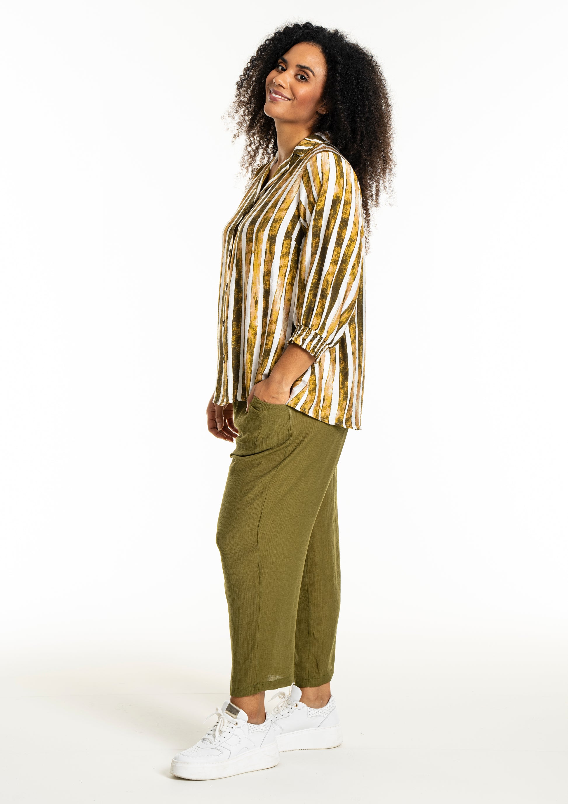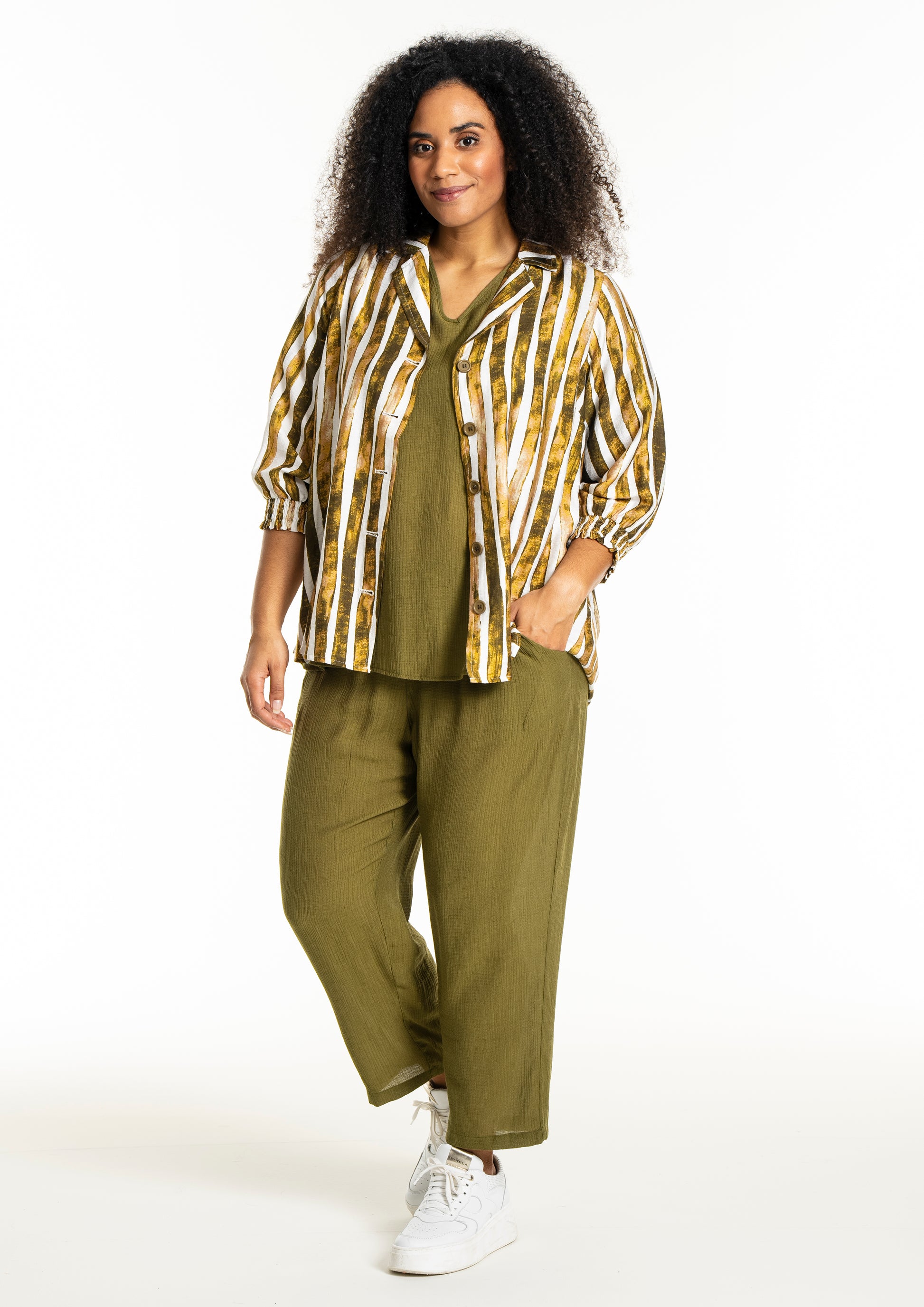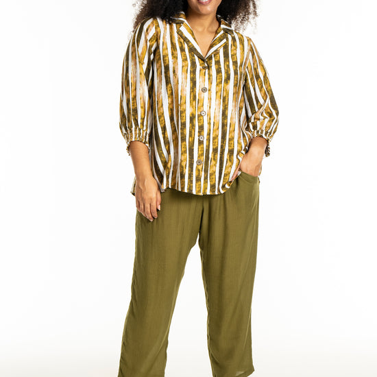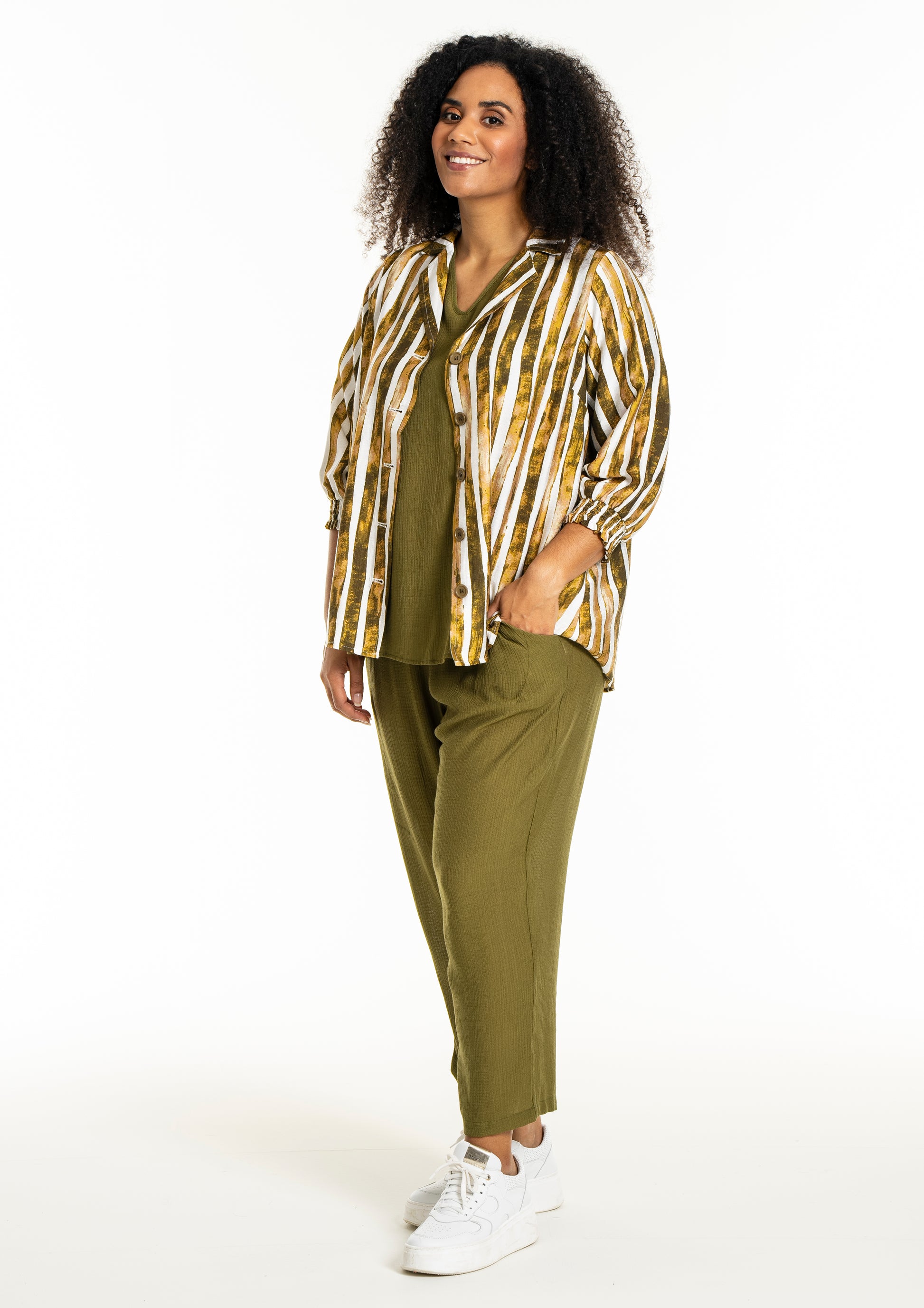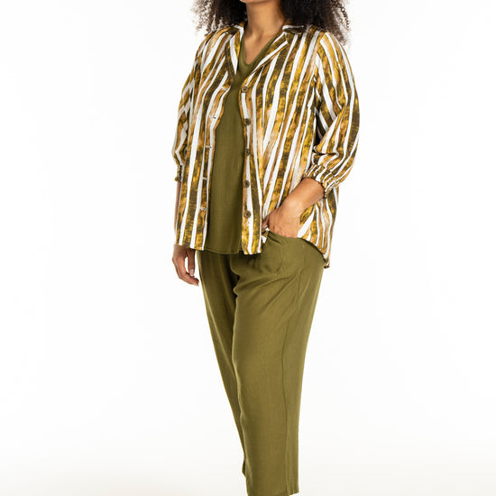 Det alsidige print i naturlige farvetoner gør det nemt at inkorporere denne overdel i din eksisterende garderobe. Skjorten fungerer godt både til et par jeans eller pæne bukser, afhængigt af anledningen.
