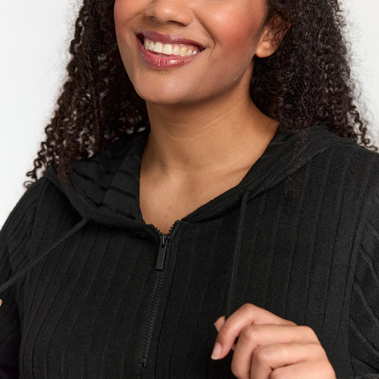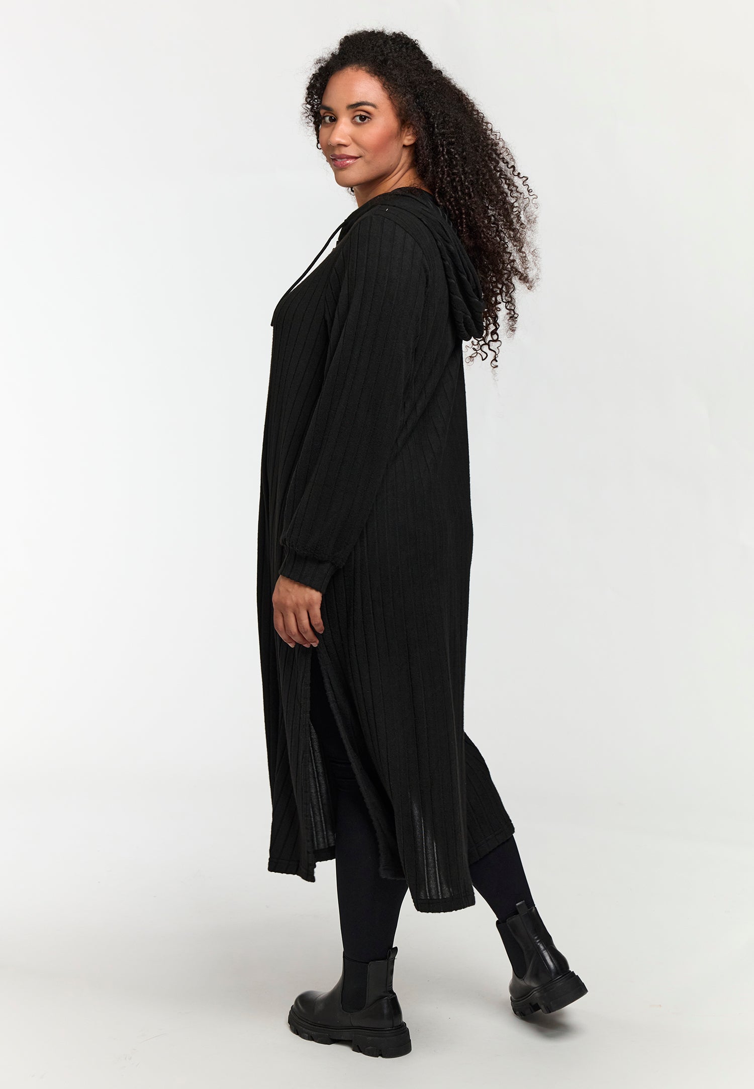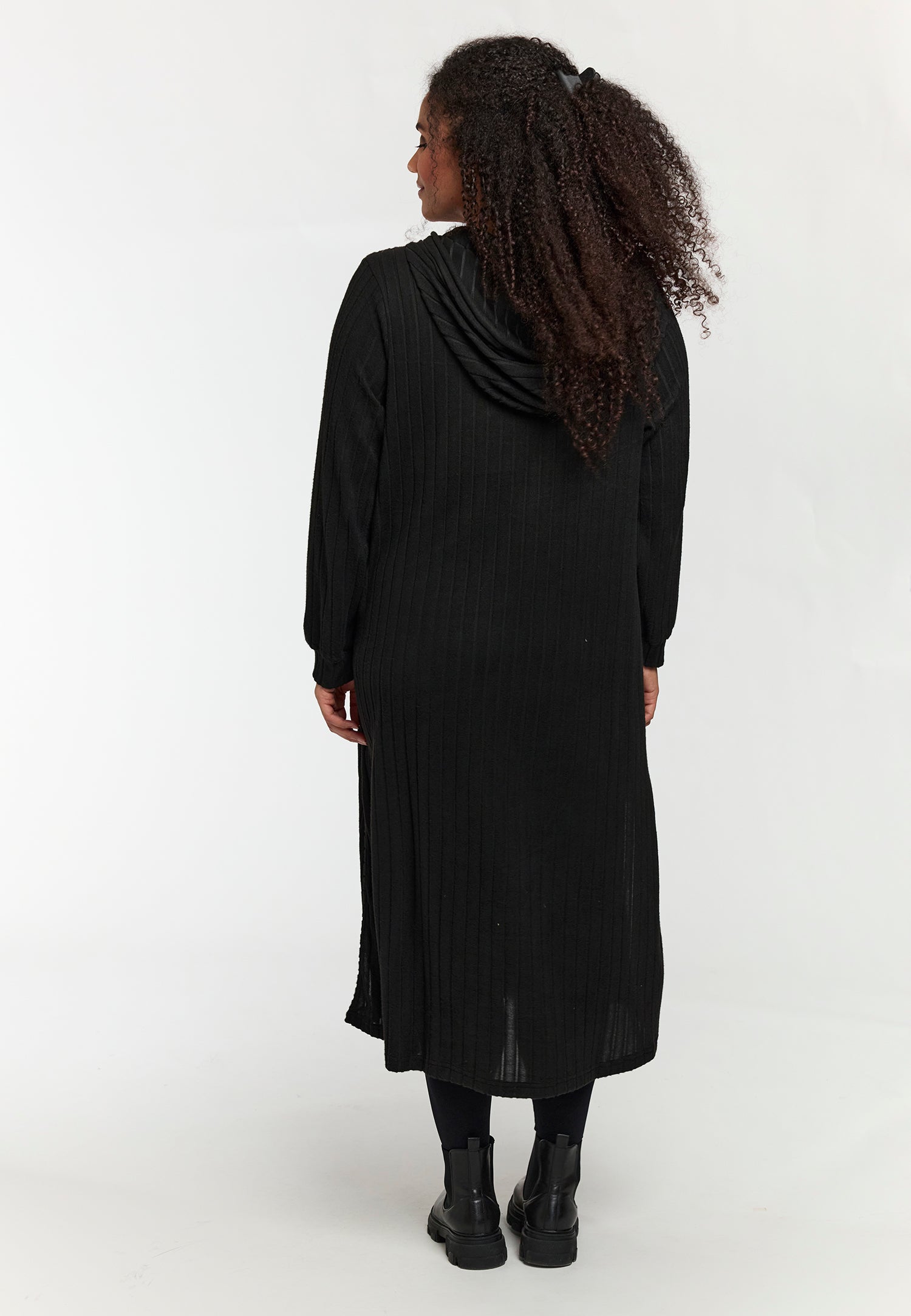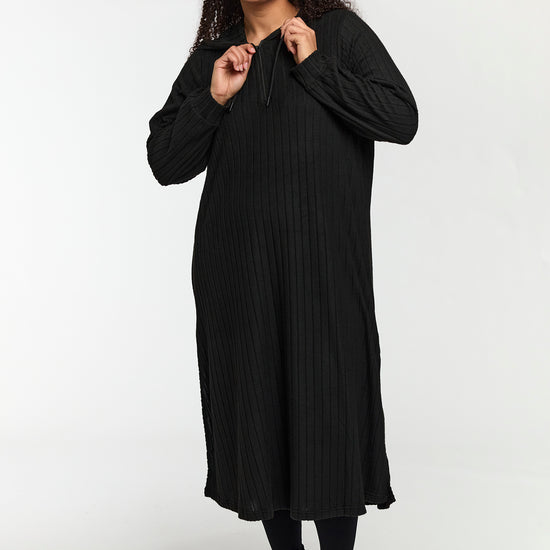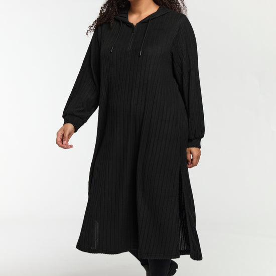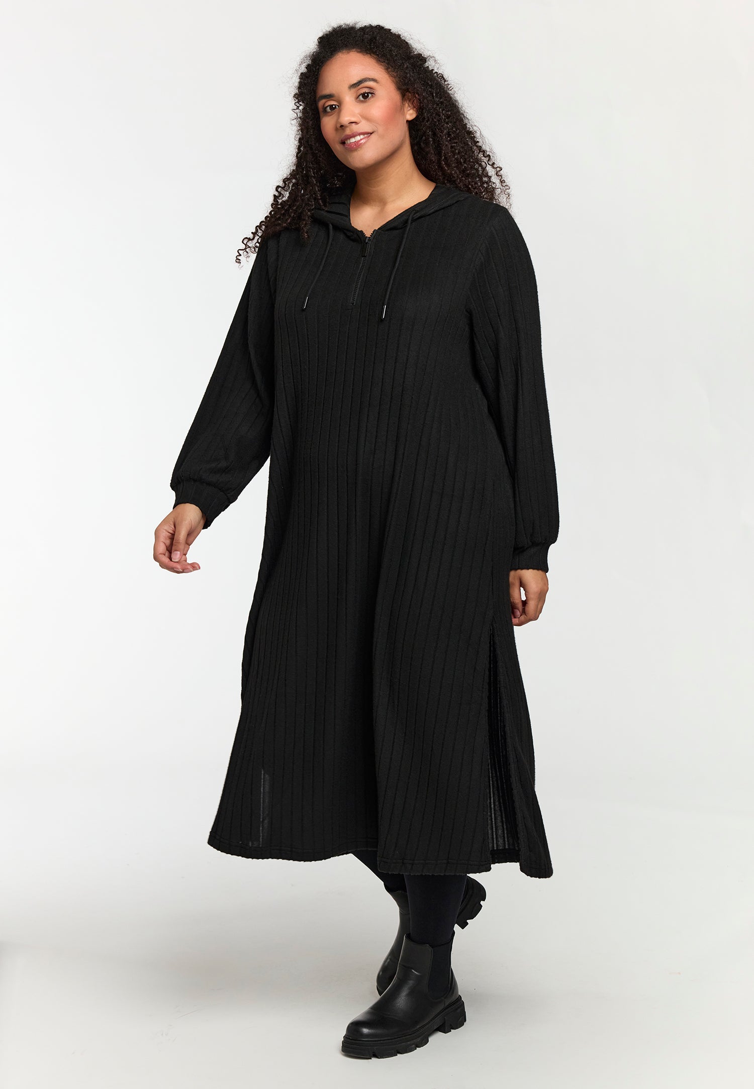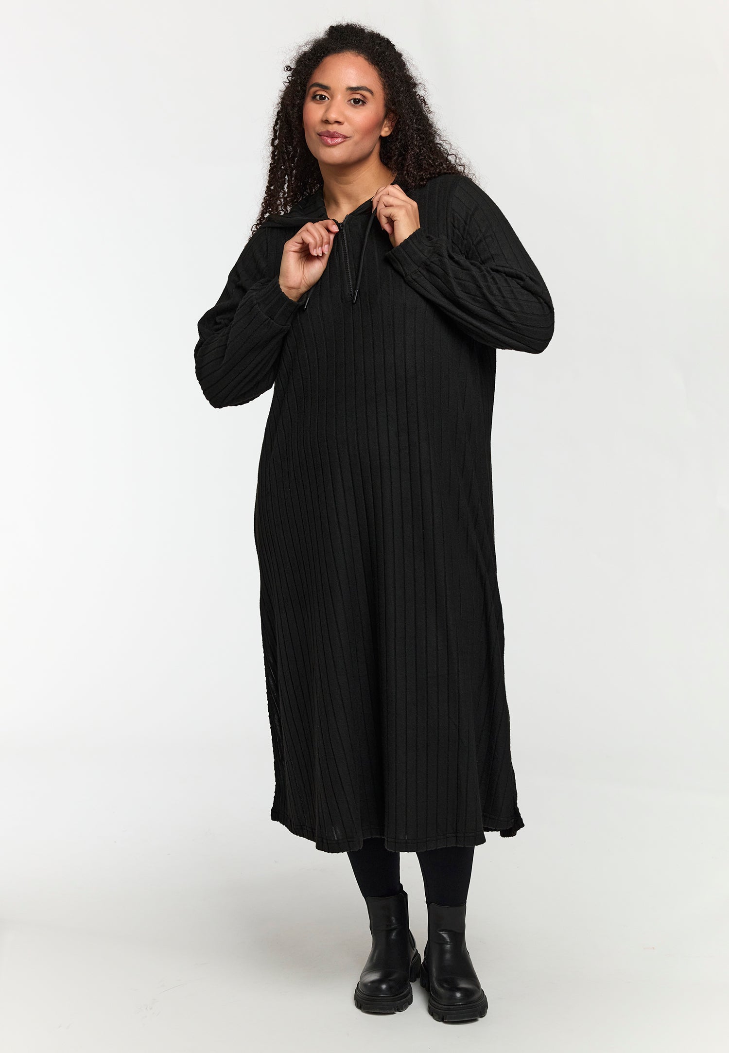 Den klassiske sorte farve gør kjolen ideel både til hverdag og fest. Du kan style den med leggings fra plus size leggings eller udforske flere muligheder i vores udvalg af plus size kjoler.