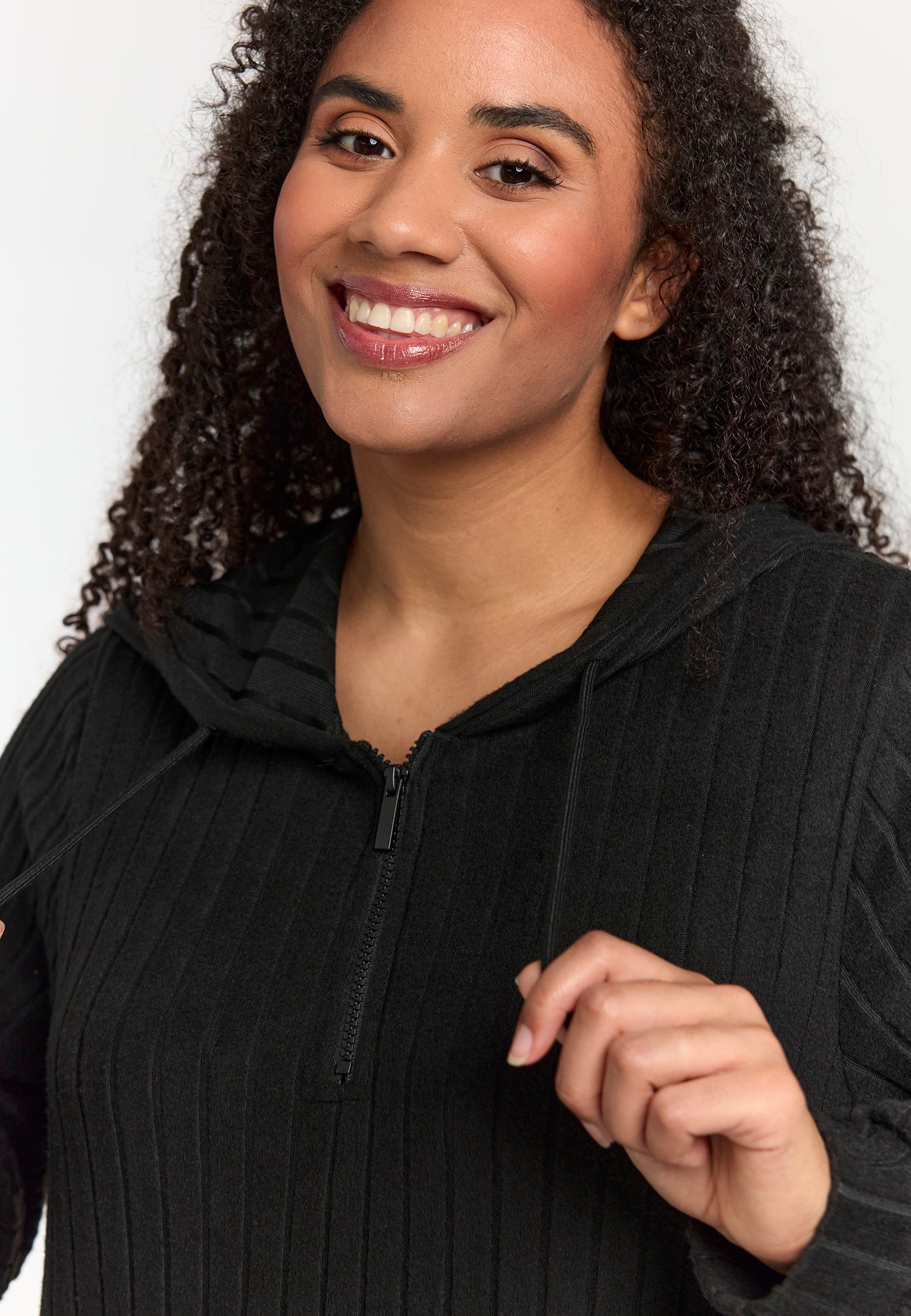 - V-udskæring med dekorativ lynlås for et feminint udtryk