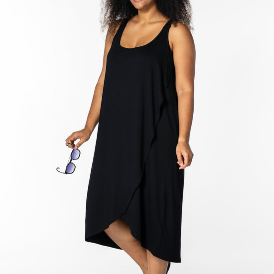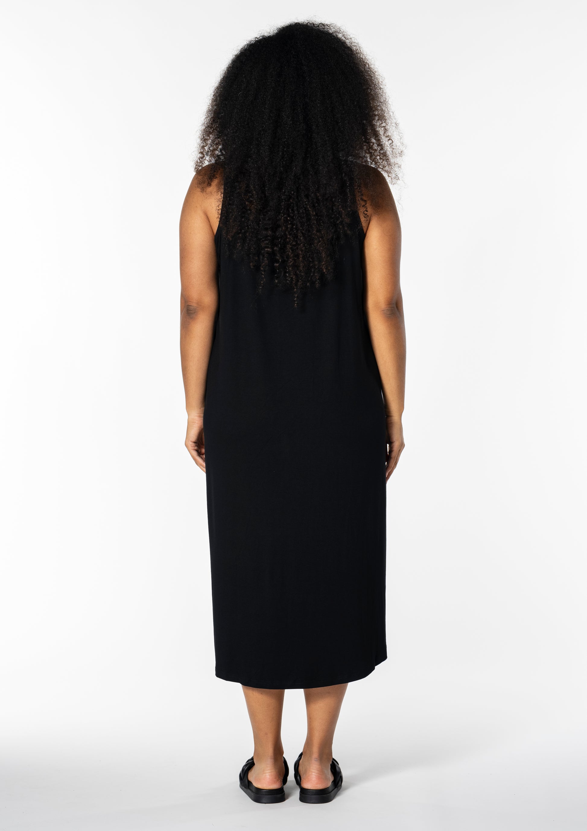 Opgrader din garderobe med denne smukke sorte kjole fra Studio. Designet med fokus på både komfort og stil, er denne kjole perfekt til enhver anledning, fra afslappede udflugter til mere formelle begivenheder. Kjolen har en afslappet pasform, der falder blødt omkring kroppen og fremhæver din naturlige skønhed.