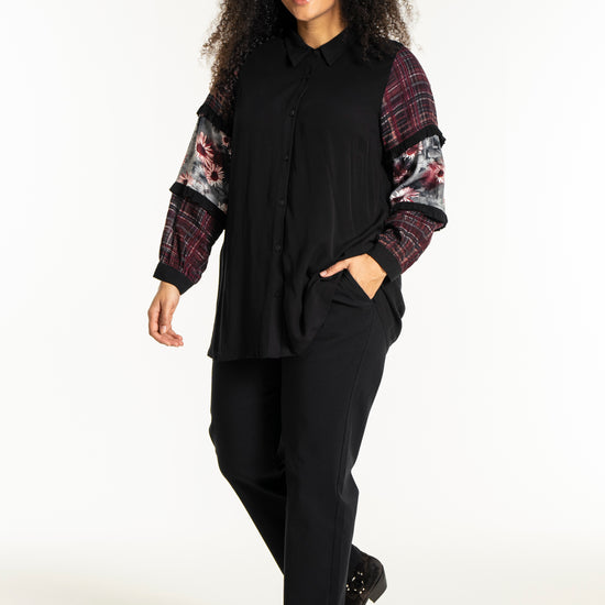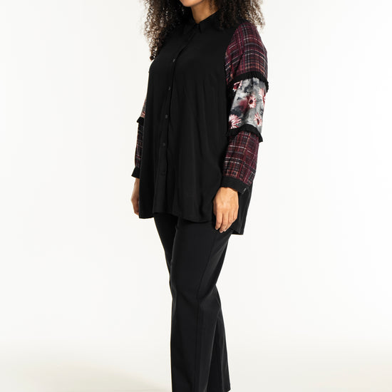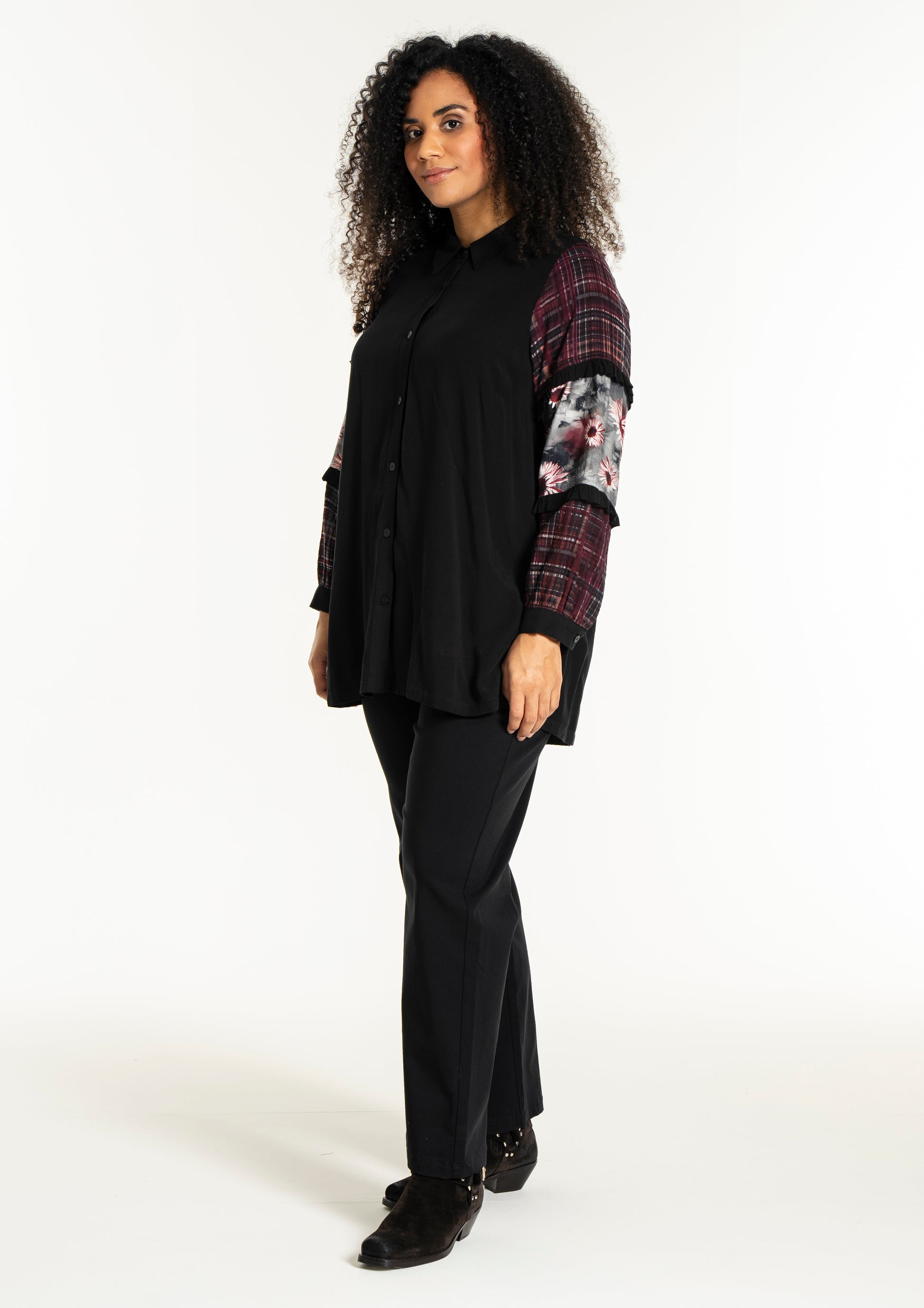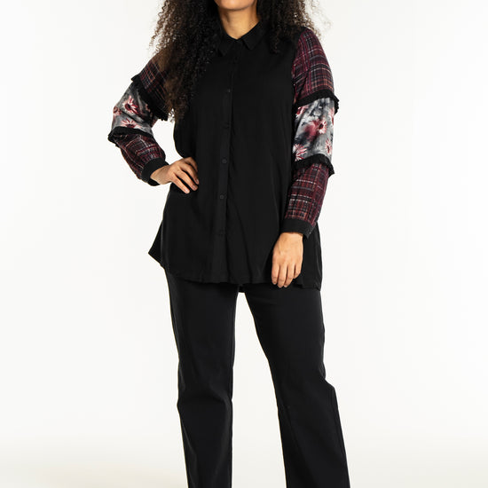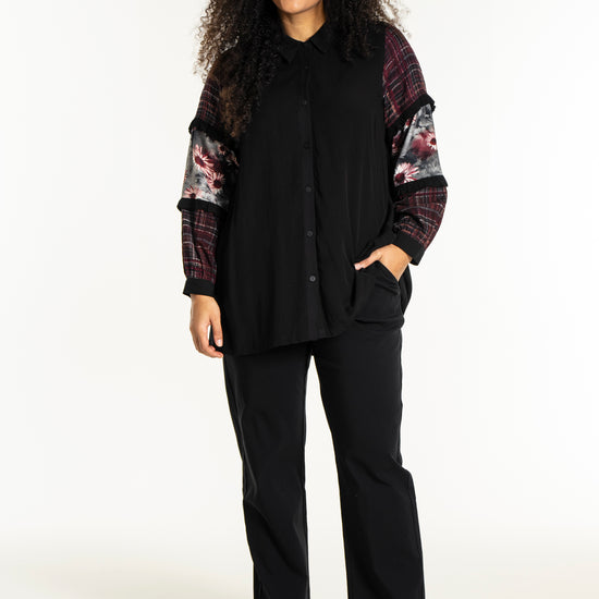 Den unikke kombination af materialer og mønstre giver skjorten et kreativt og kunstnerisk udtryk. Perfekt til dem, der ønsker at udtrykke deres personlige stil. Skjorten kan let styles med jeans eller en nederdel for et fuldendt look. Uanset om det er til kontoret eller en aften ude, vil denne skjorte fra Studio gøre indtryk.