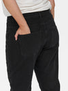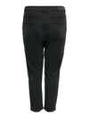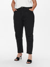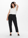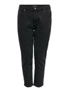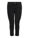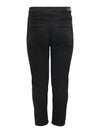 Sorte jeans med høj talje. Løs omkring lårene med en smal form ned af benet. 5 lomme model.