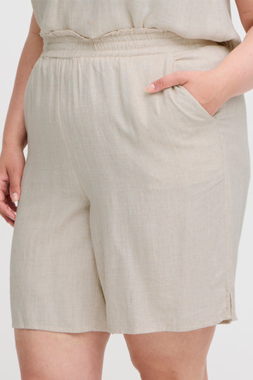 Komfortabel shorts som er knælange og med elastik i taljen, der sikrer en fleksibel og behagelig pasform. De har sidelommer, som gør dem praktiske til hverdagens små behov. Med en afslappet pasform er disse shorts ideelle til casual brug og kan let styles med forskellige overdele for at skabe nye looks.