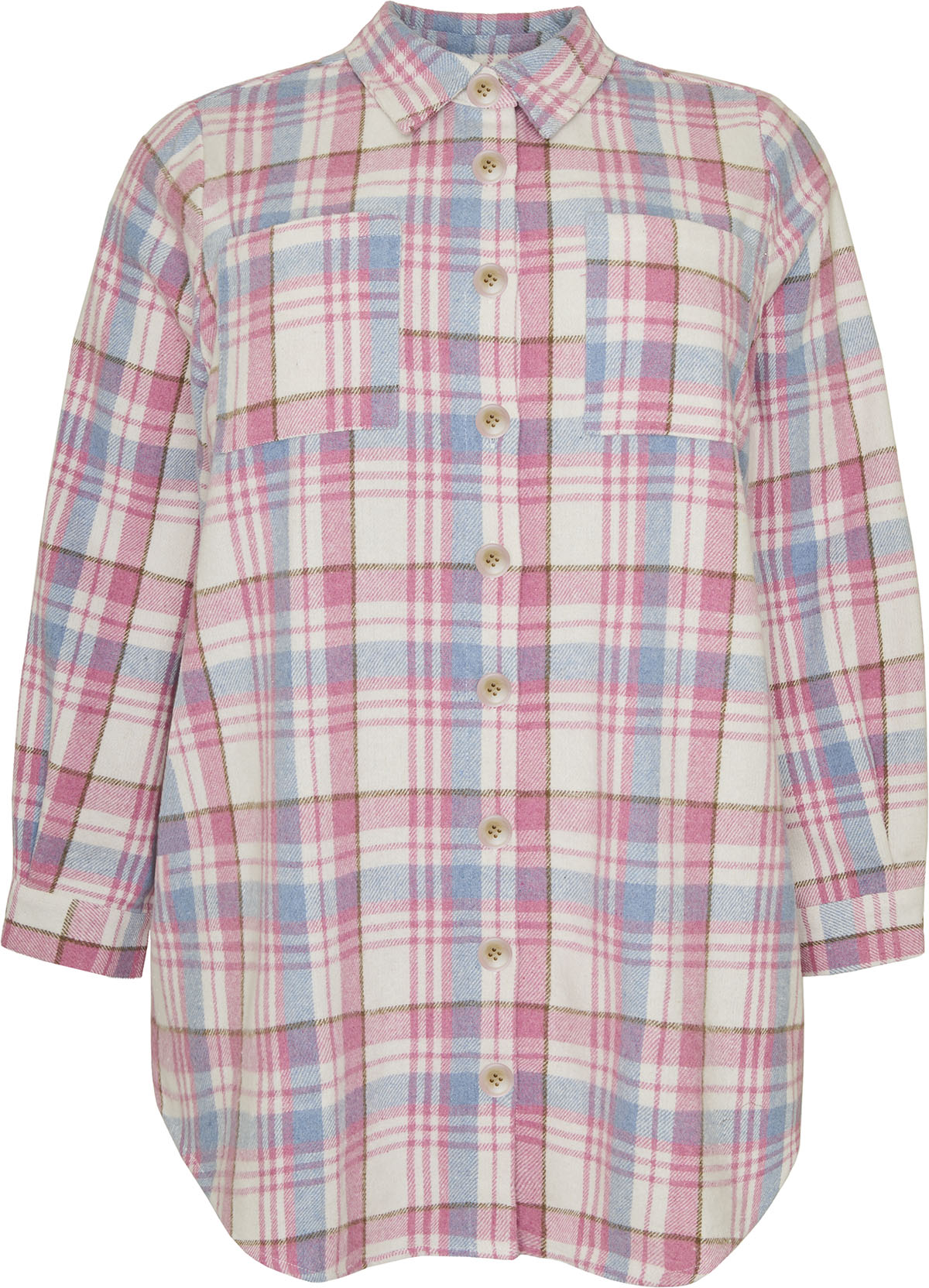 Denne flotte skjorte fra Cassiopeia er designet med et tidløst ternet mønster, der giver et friskt og farverigt pust til garderoben. Modellen har en afslappet pasform med lange ærmer og en let afrundet kant forneden, hvilket sikrer en behagelig komfort og et flot fald omkring hofterne.