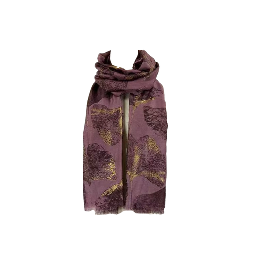 Dette elegante tørklæde fra Update er fremstillet i 100% viskose, hvilket sikrer en let og behagelig kvalitet. Farven er en smuk mørk rosa, der kombineres med dekorative guldtryk for et eksklusivt og feminint udtryk.