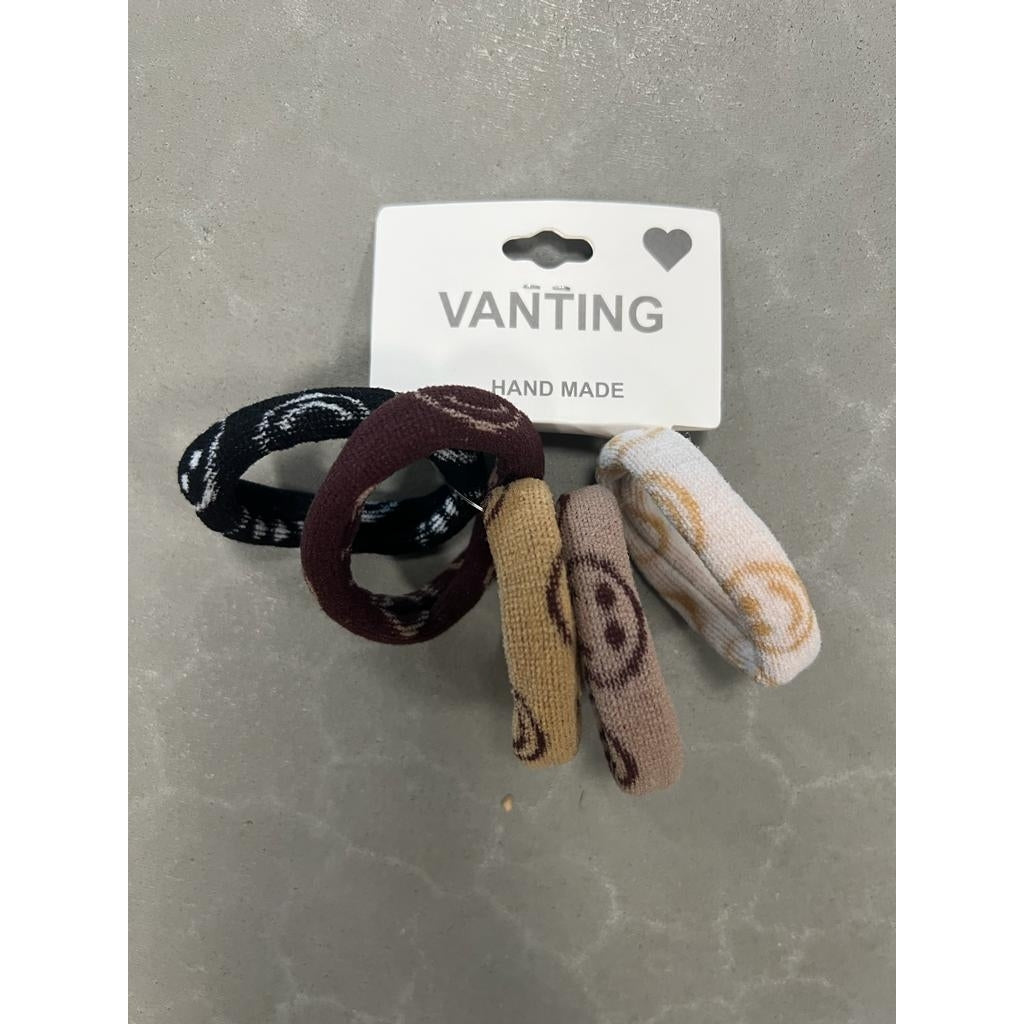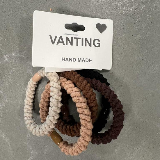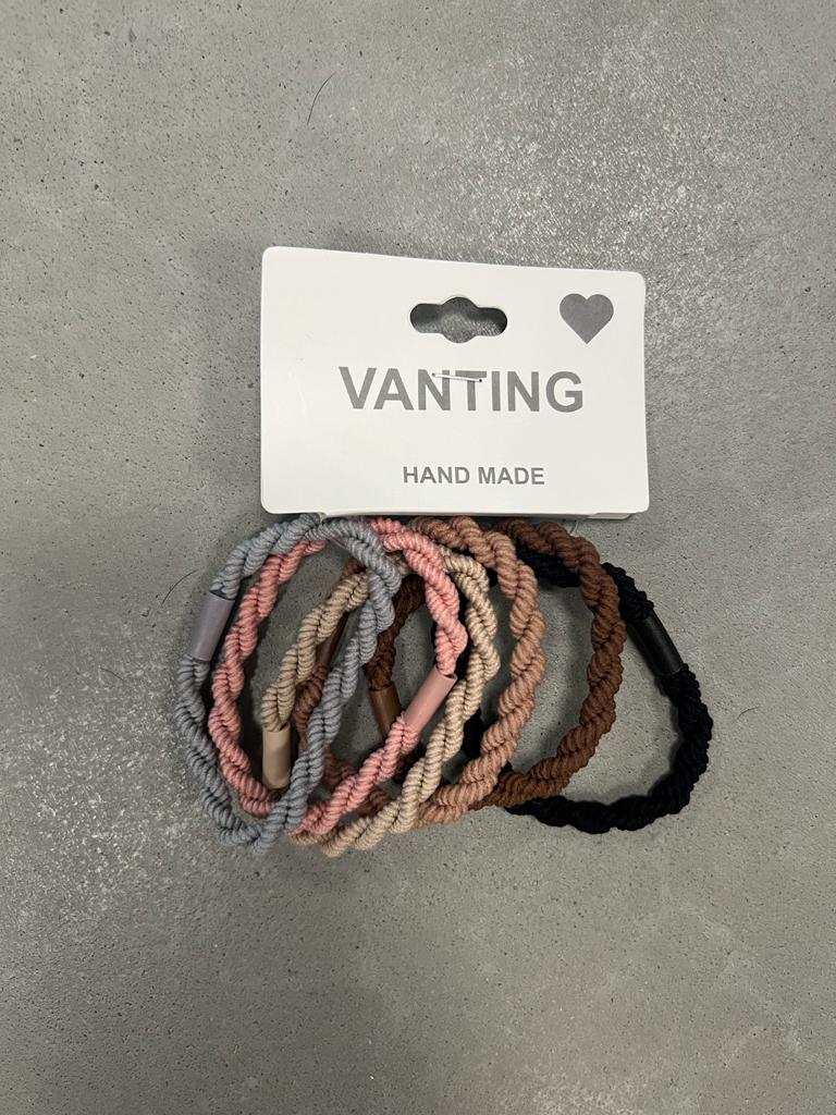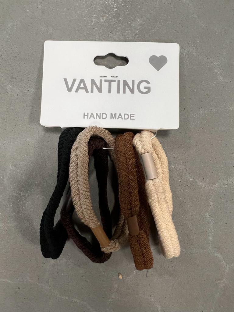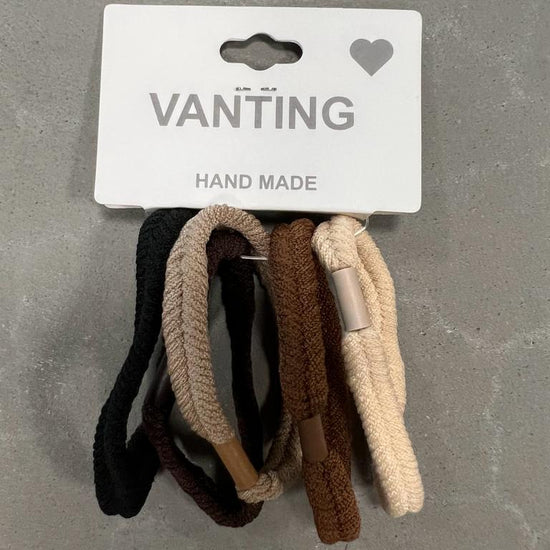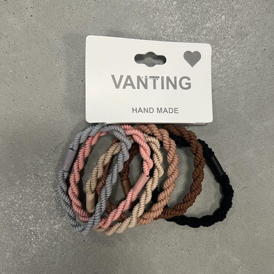Her får du en fin pakke med fem hårelastikker fra Vanting, der kommer i en blanding af neutrale og varme farver. Du kan med fordel style din frisure med disse håraccessories for et legende og personligt udtryk.