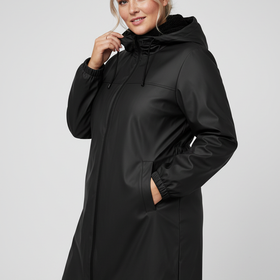 Teddy Coated Coat er det oplagte valg, hvis du vil holde dig tør og varm uden at gå på kompromis med dit look. Den sorte farve og de rene linjer gør jakken nem at kombinere med både casual og mere elegante outfits. Elastiske ærmekanter og justerbar hætte giver ekstra komfort, mens de rummelige lommer sikrer praktisk opbevaring.