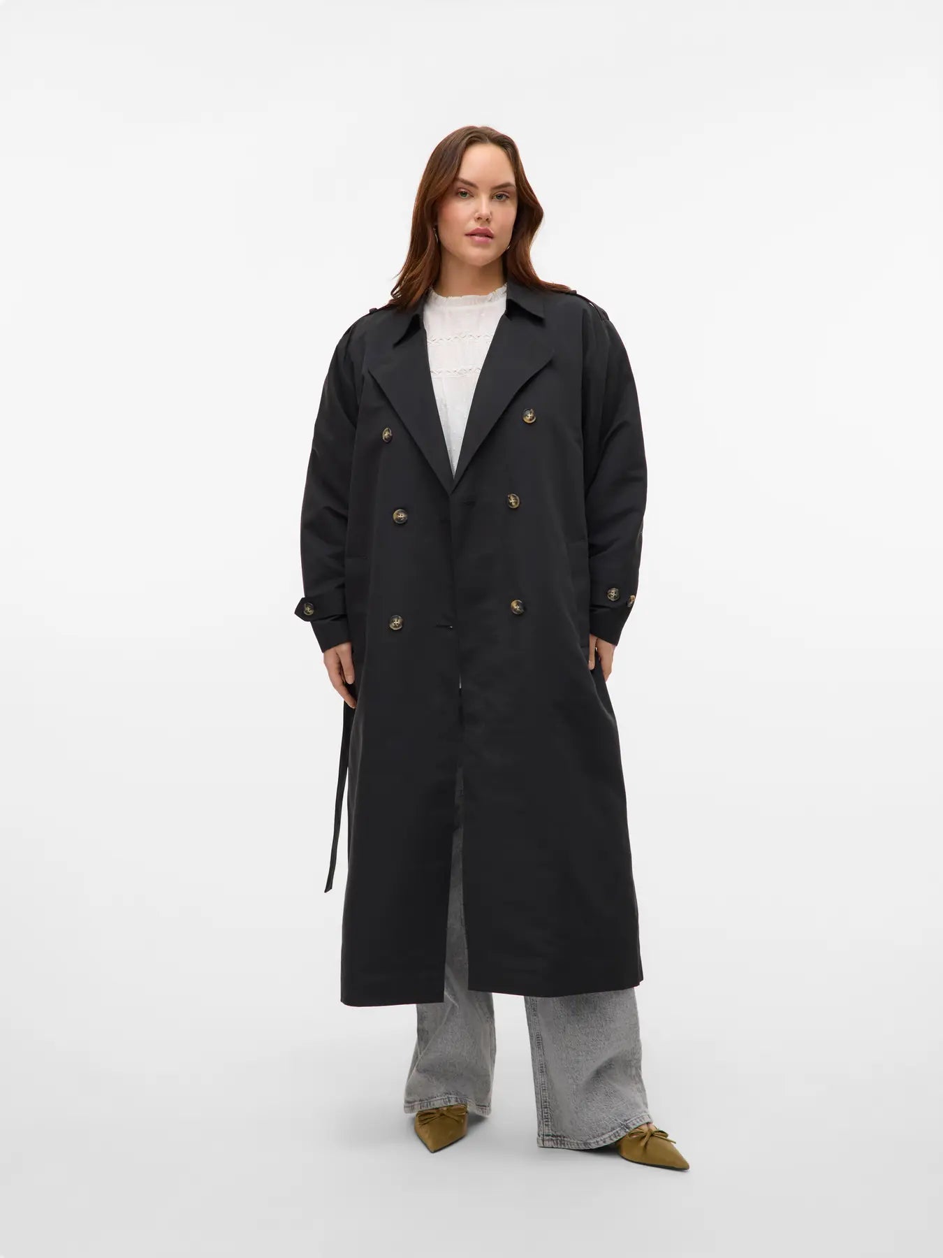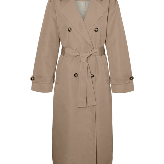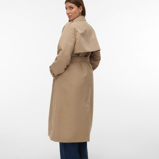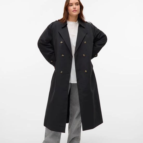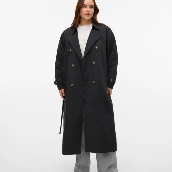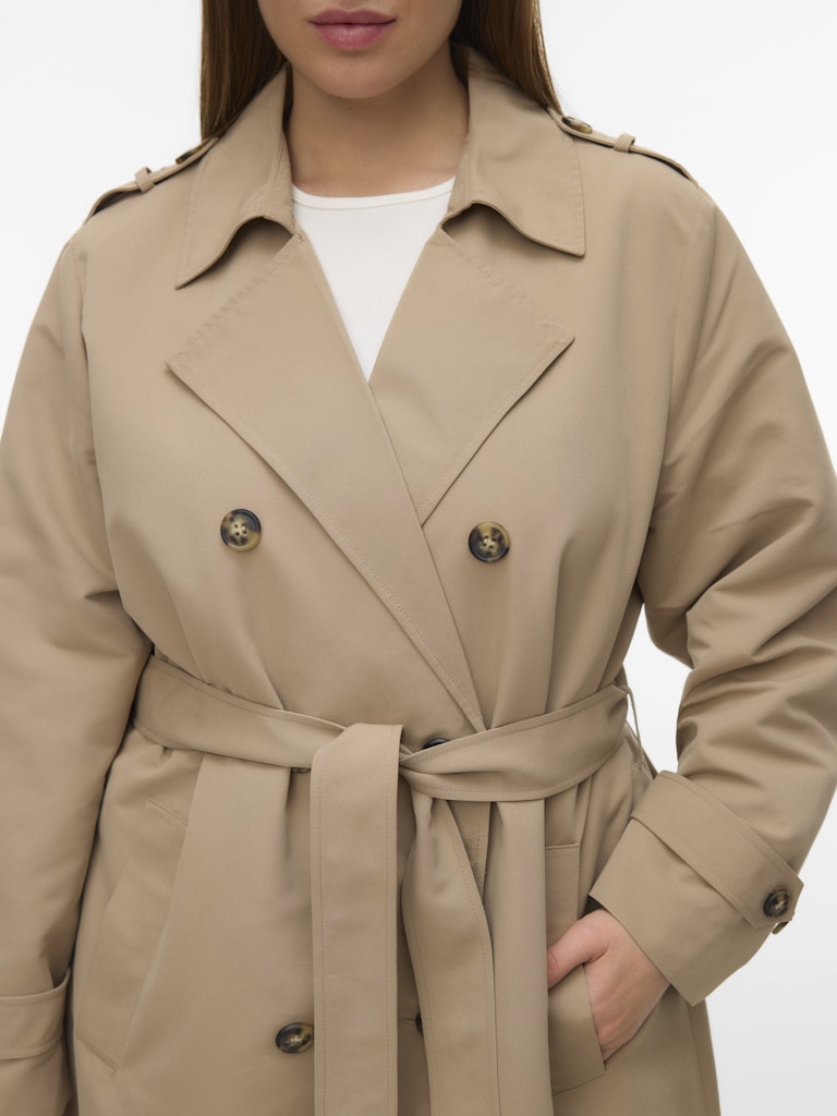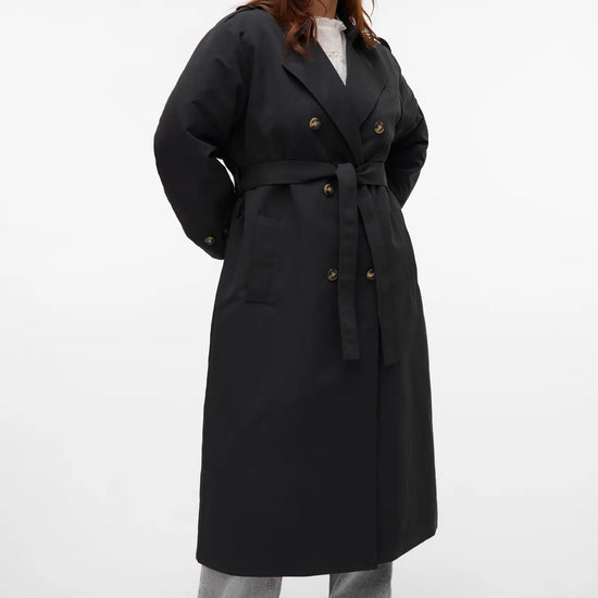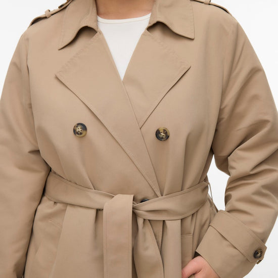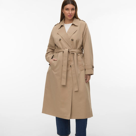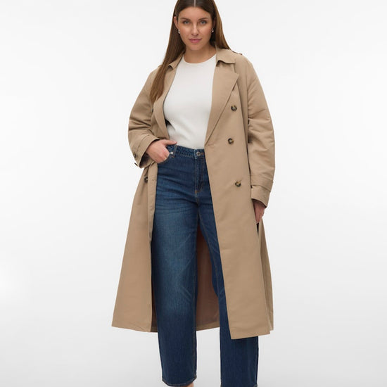 Denne elegante trenchcoat fra Vero Moda Curve er en tidløs klassiker, der tilføjer et sofistikeret touch til enhver garderobe. Frakken er designet med en flot dobbelradet knaplukning og en traditionel reverskrave, der skaber et flot og skarpt udtryk. Modellen har en længde, der går til under knæet, hvilket giver et flot fald og god dækning i overgangsperioderne. Du kan se flere fede jakker i vores udvalg af Vero Moda Curve jakker.