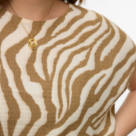 Basic-toppe er uundværlige i næsten alle skabe, og denne top er ingen undtagelse. Den har en rund halsudskæring og korte ærmer, der giver et afslappet og behageligt fit i regular pasform. Stoffet består hovedsageligt af genanvendt polyester, hvilket giver et bæredygtigt valg, samtidig med at den føles blød og fleksibel på huden. Toppen kan nemt styles med en cardigan, et par løstsiddende mom-jeans og chunky støvler for et cool og afslappet hverdagslook.