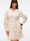Med denne Vero Moda Curve kjole får du et tidløst design, der passer til enhver anledning. Den off white nuance tilføjer et luksuriøst touch til dit outfit. Uanset om du styler den med en blazer for et professionelt look eller bærer den alene for en mere afslappet stil, vil du altid føle dig godt tilpas og stilfuld.