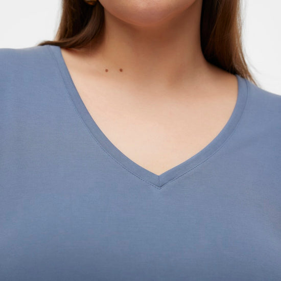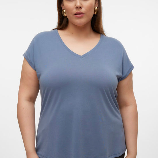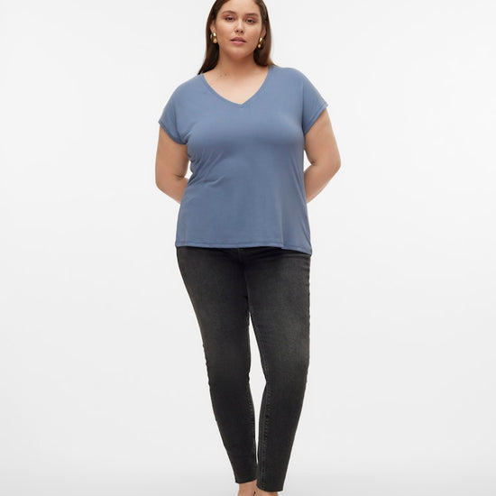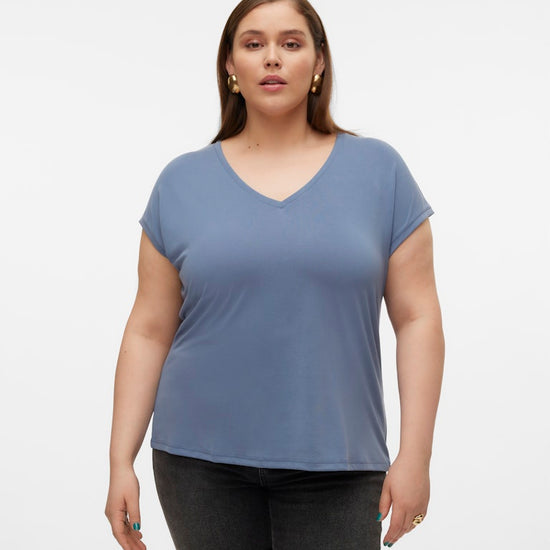 Basics er uundgåelige i enhver garderobe, og denne T-shirt fra Vero Moda Curve er ingen undtagelse. Med sin alsidige "China Blue" farve og afslappede pasform, er den perfekt til at binde et outfit sammen. Kombinér den med en mom-jeans og chunky støvler for et cool og afslappet hverdagslook.